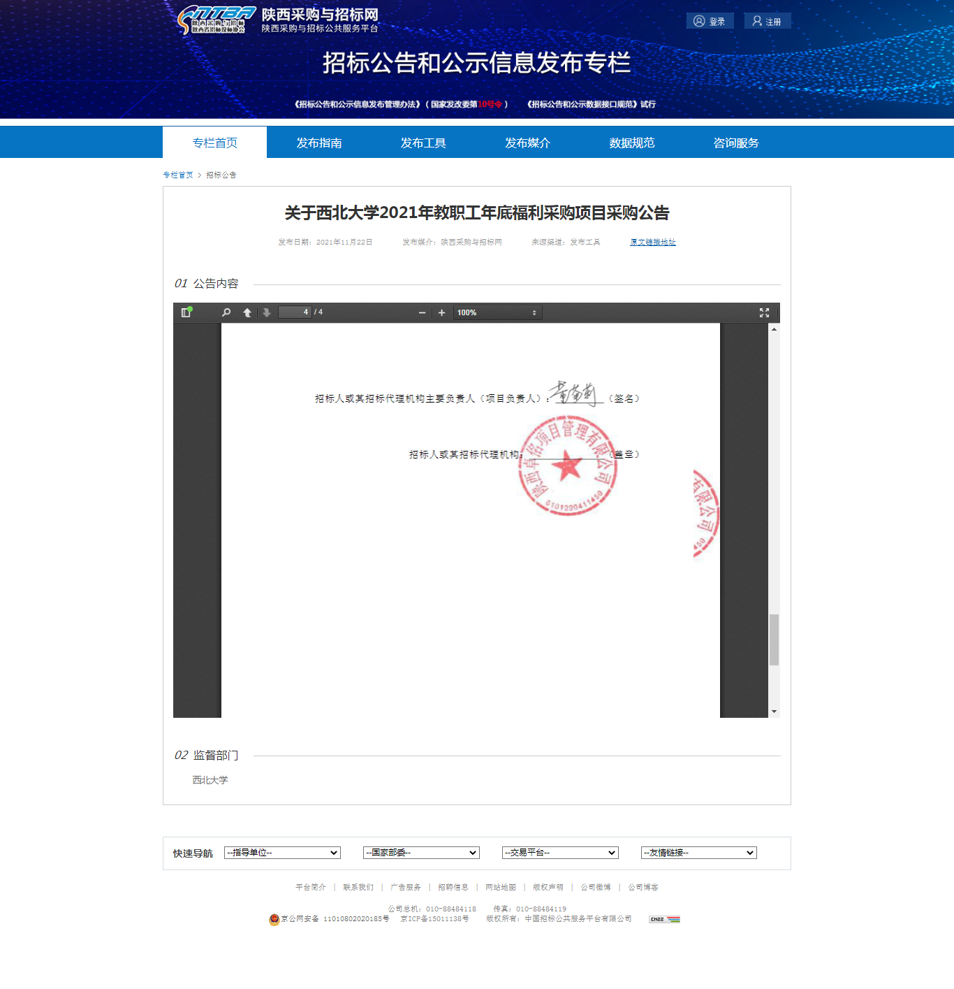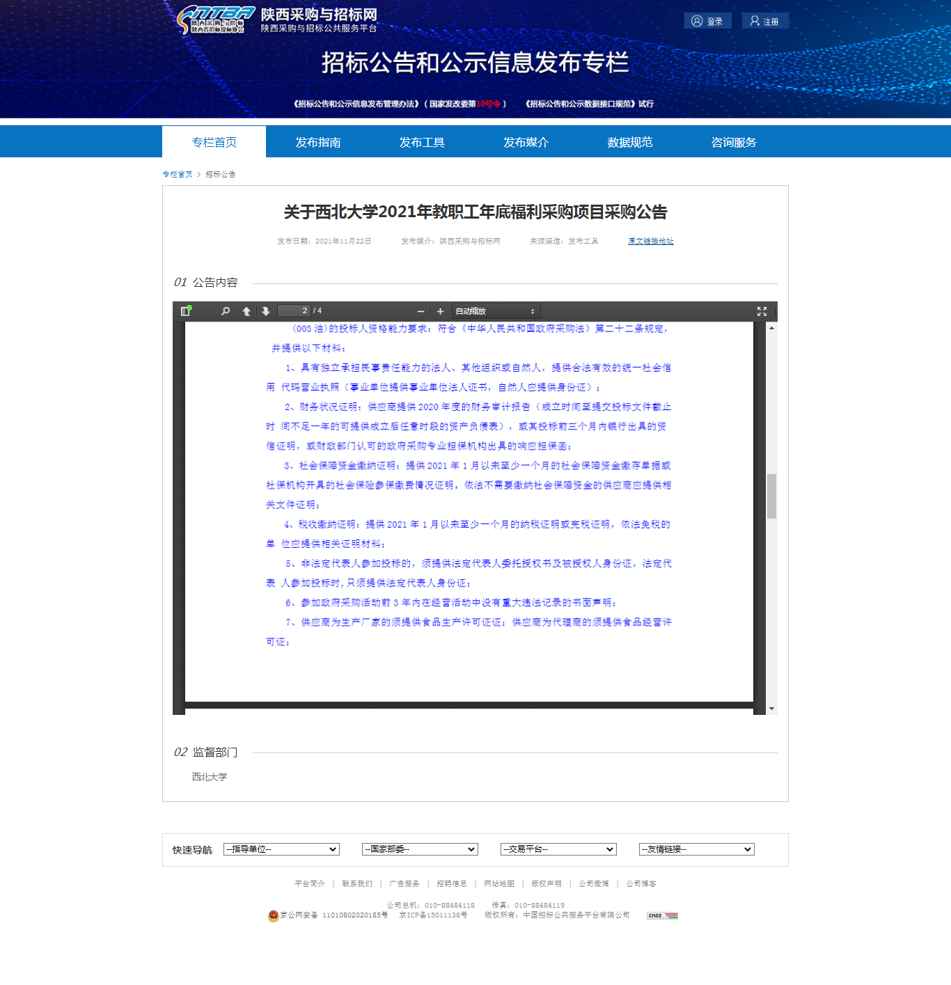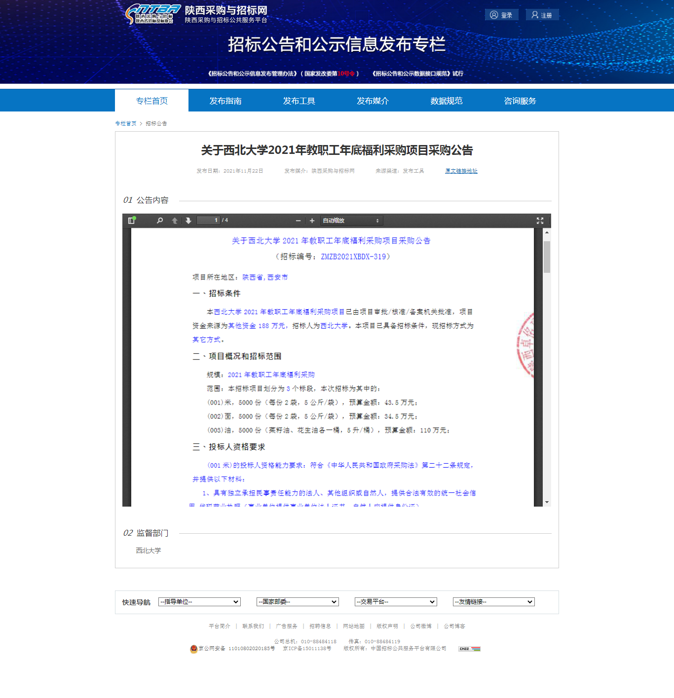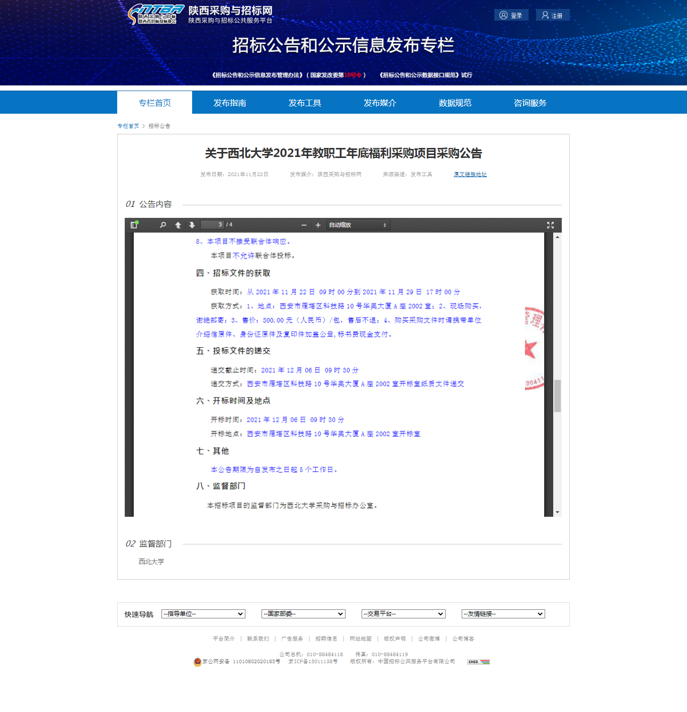 关于西北大学2021年教职工年底福利采购项目采购公告