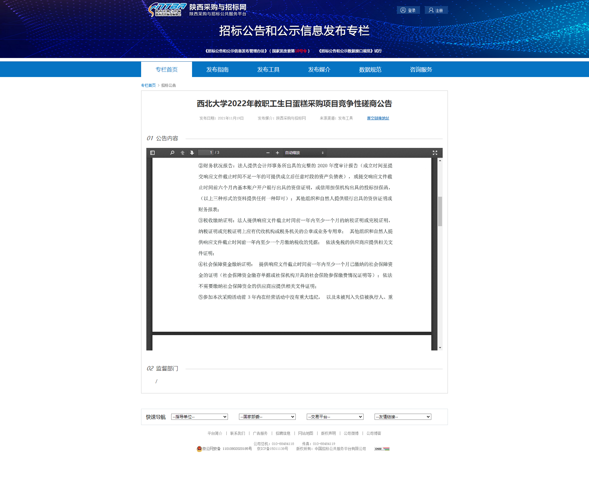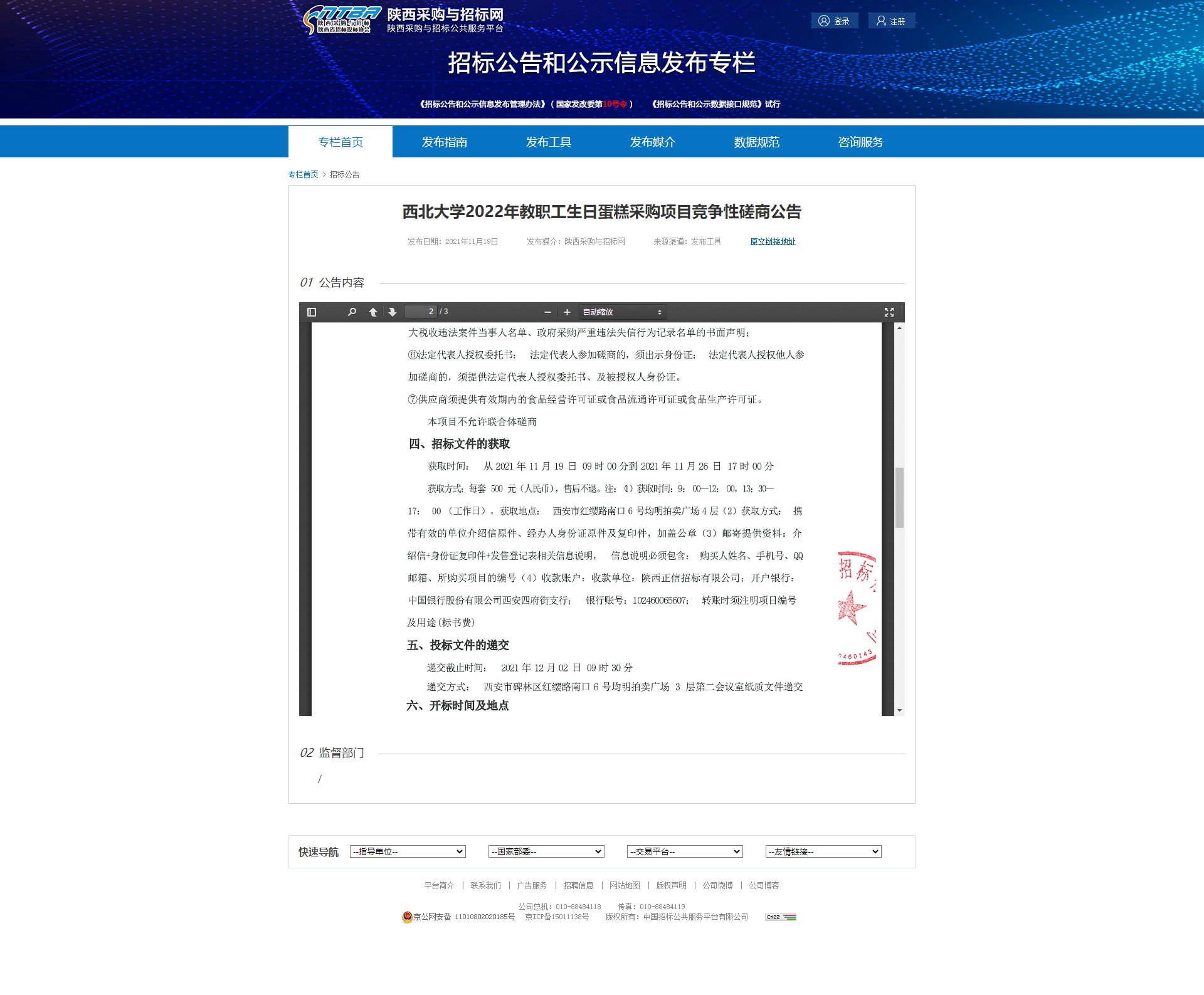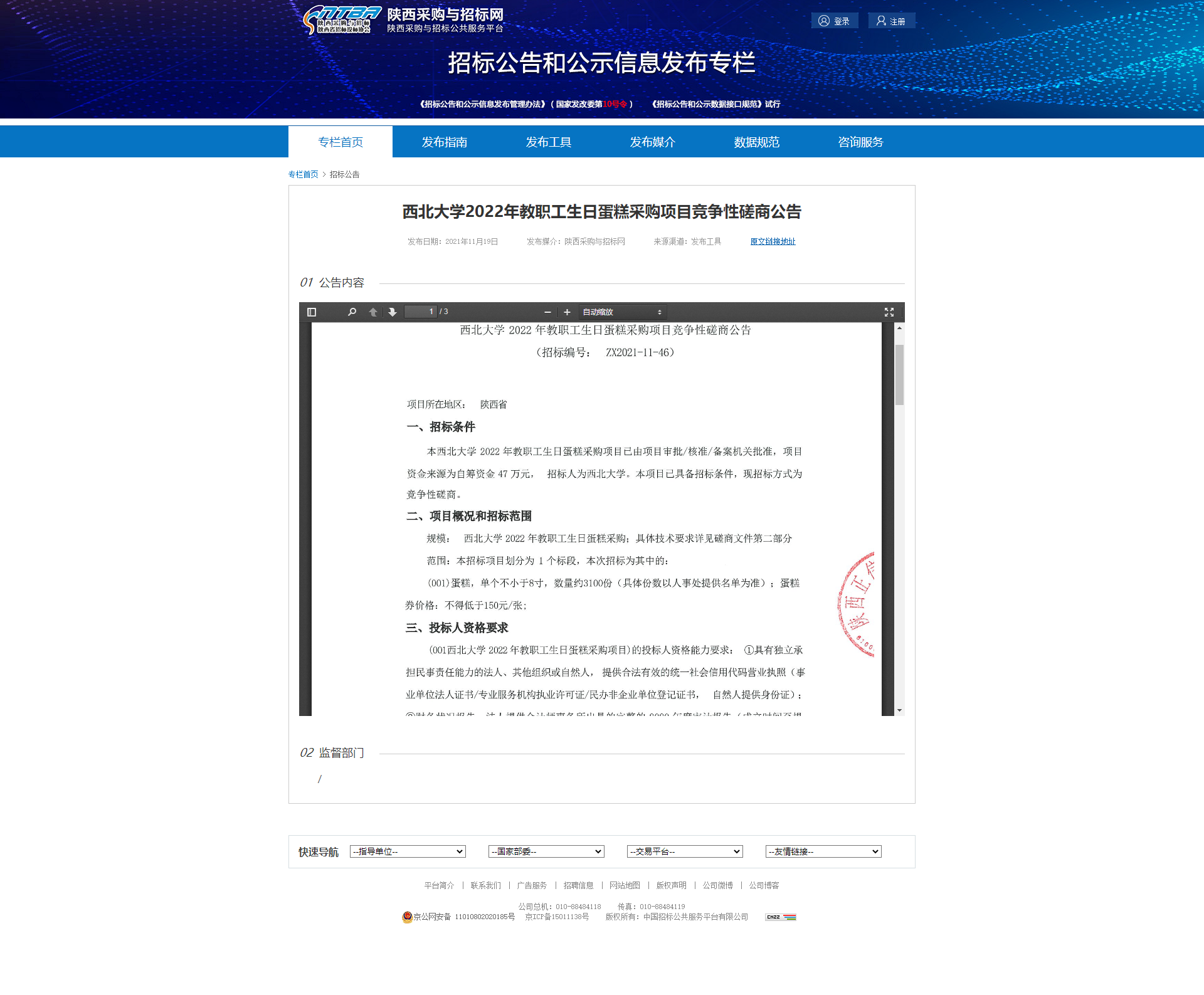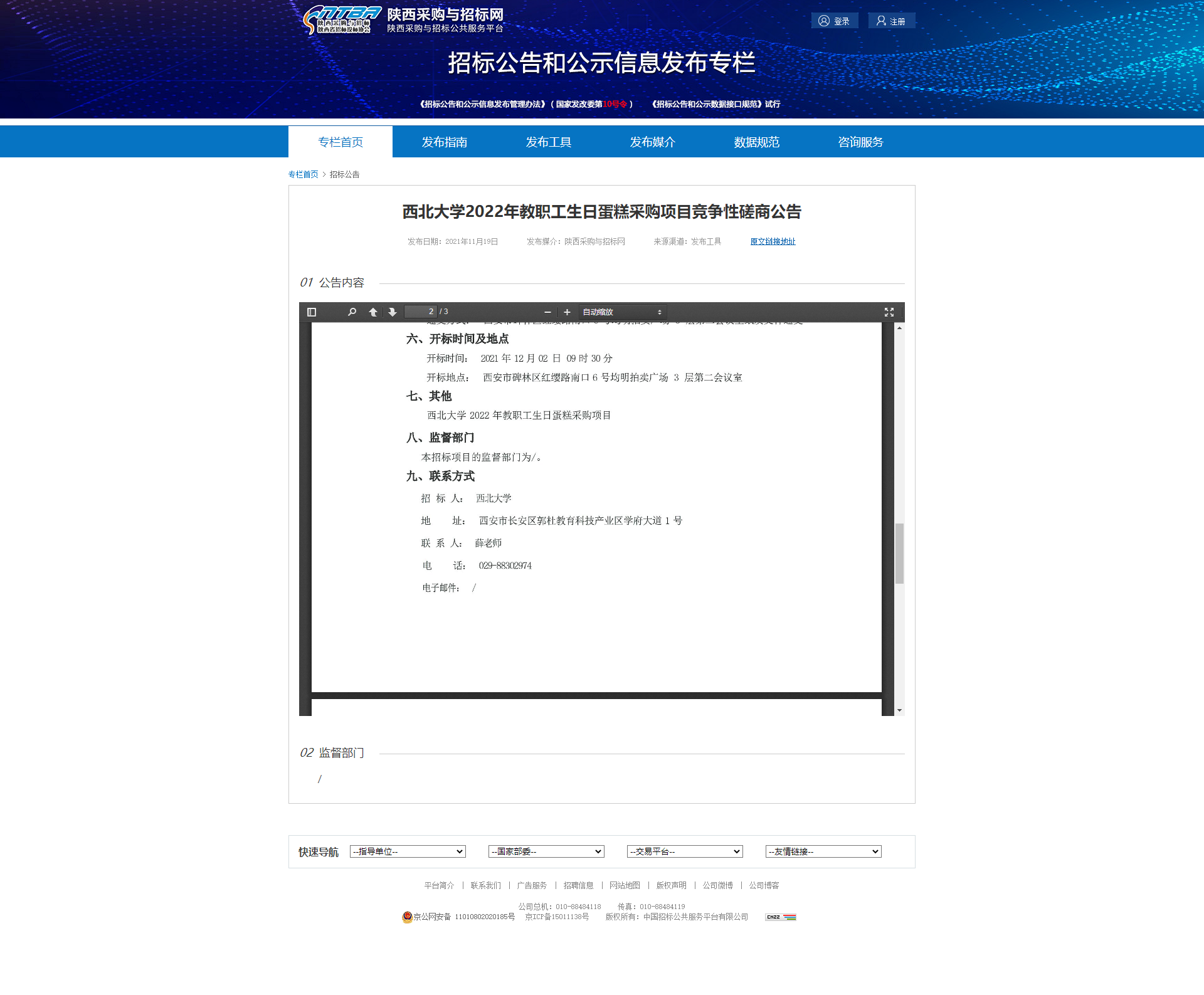 西北大学2022年教职工生日蛋糕采购项目竞争性磋商公告