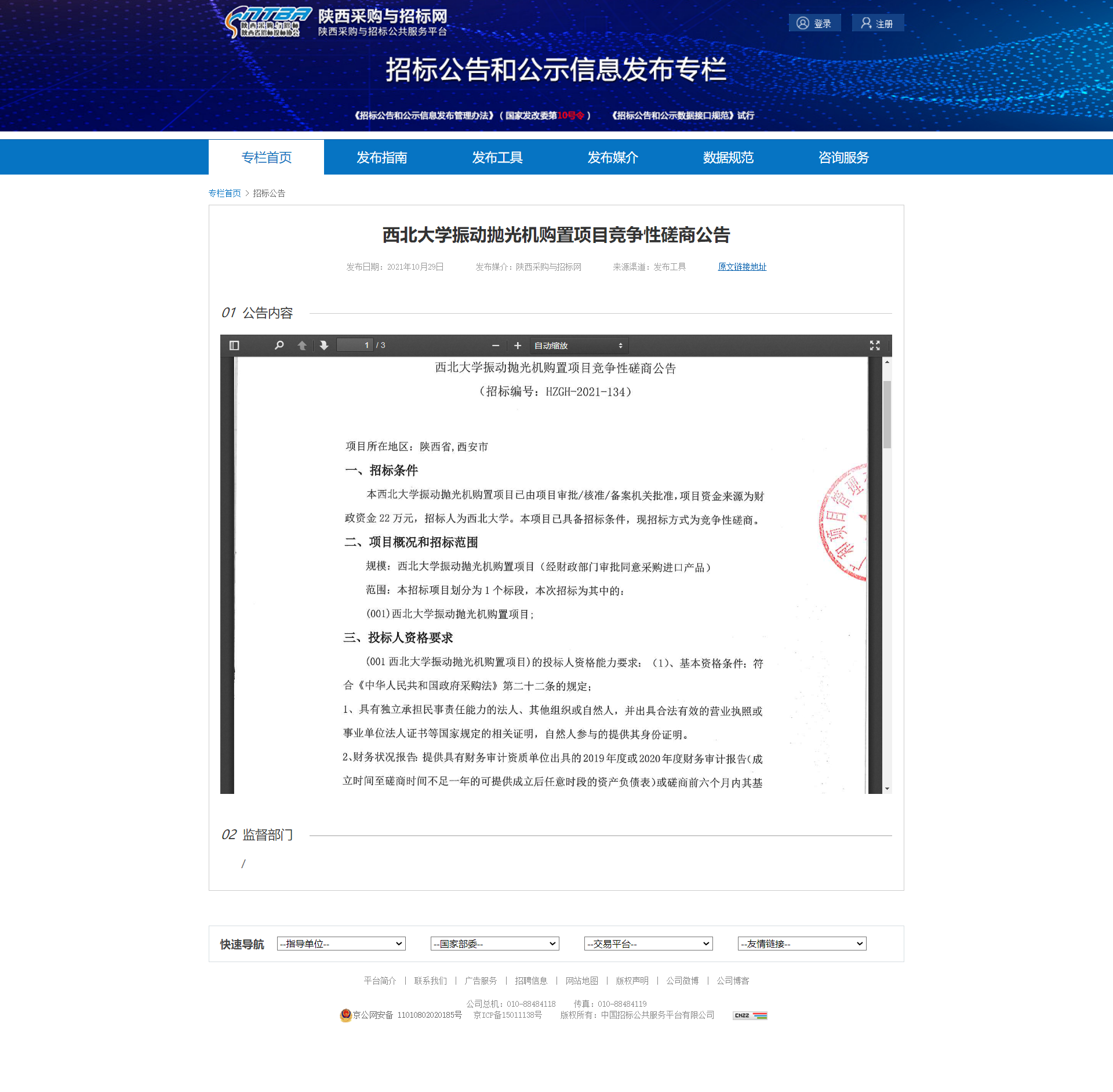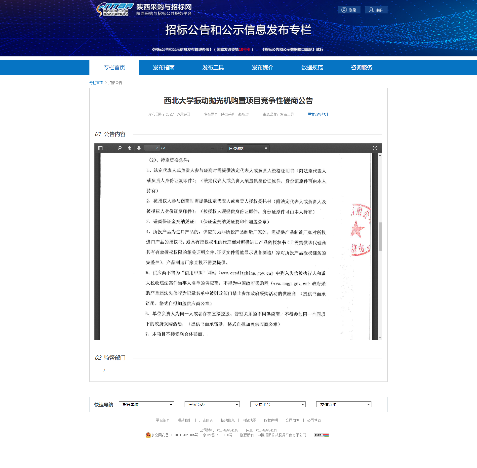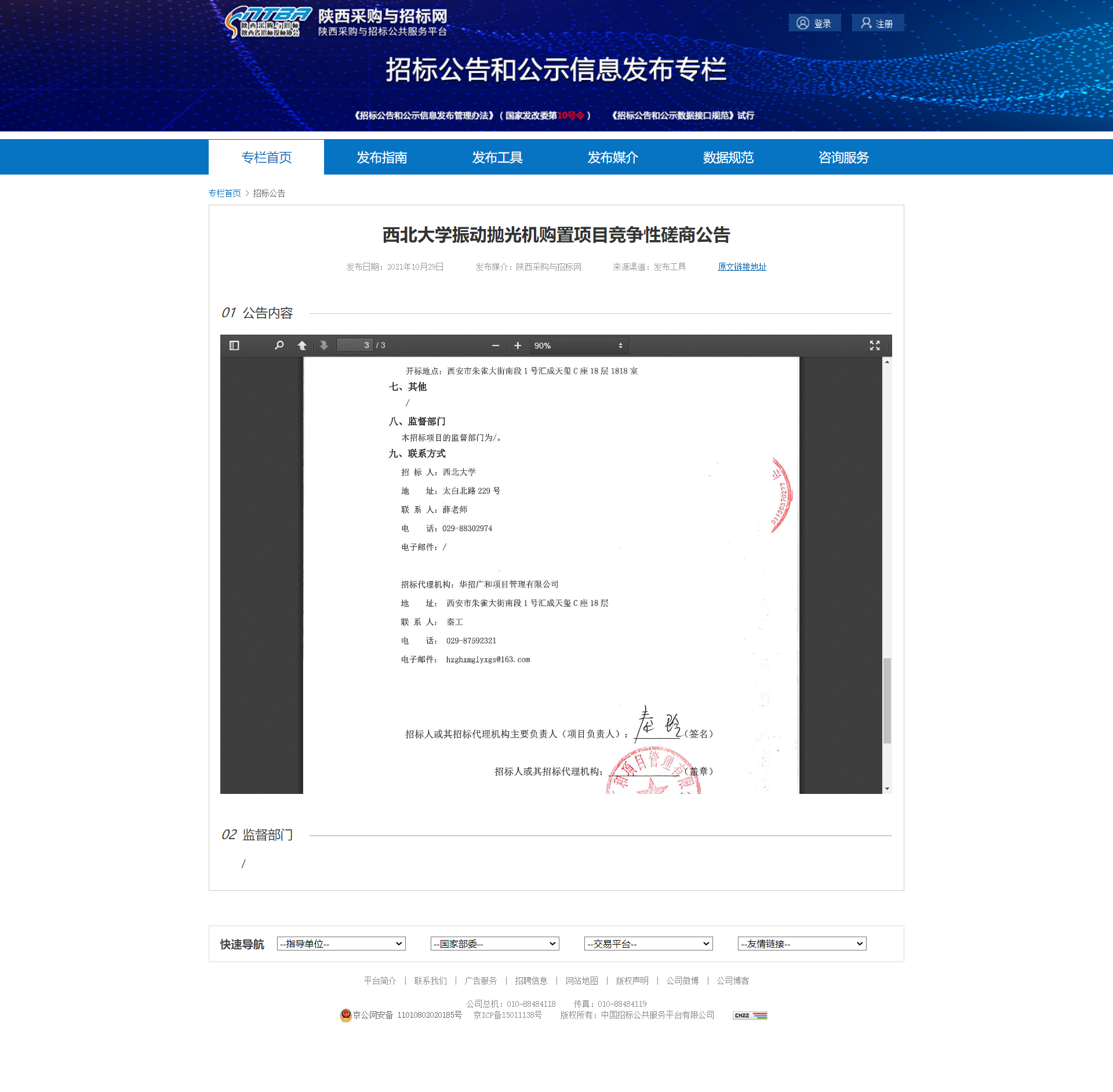 西北大学振动抛光机购置项目竞争性磋商公告