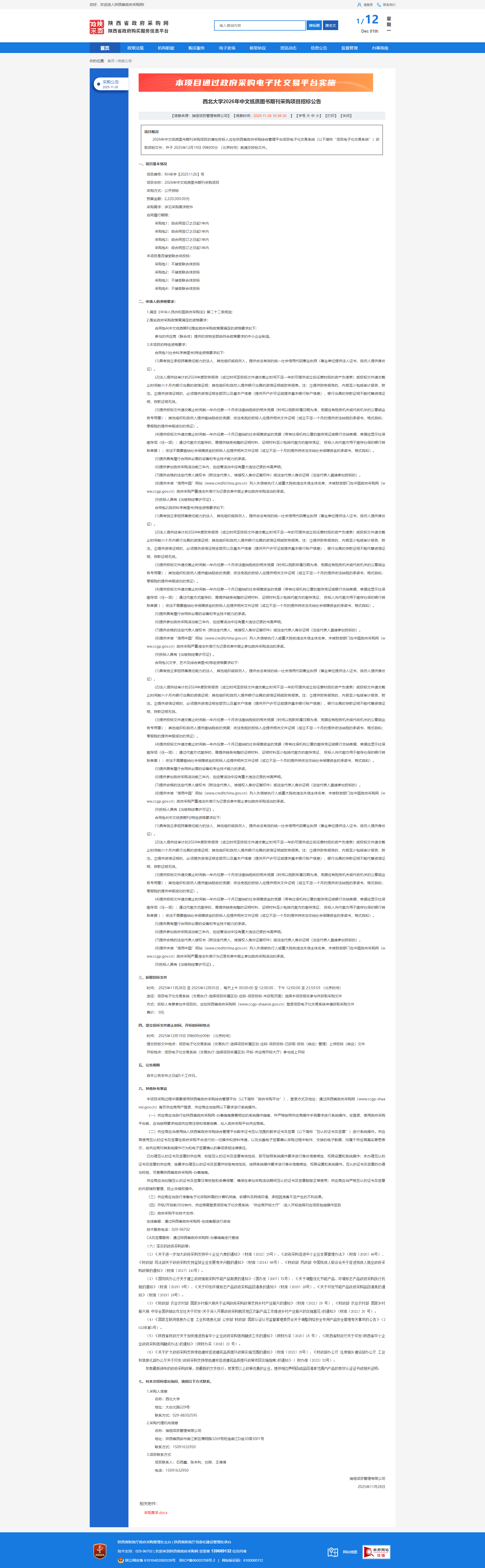 西北大学2026年中文纸质图书期刊采购项目招标公告