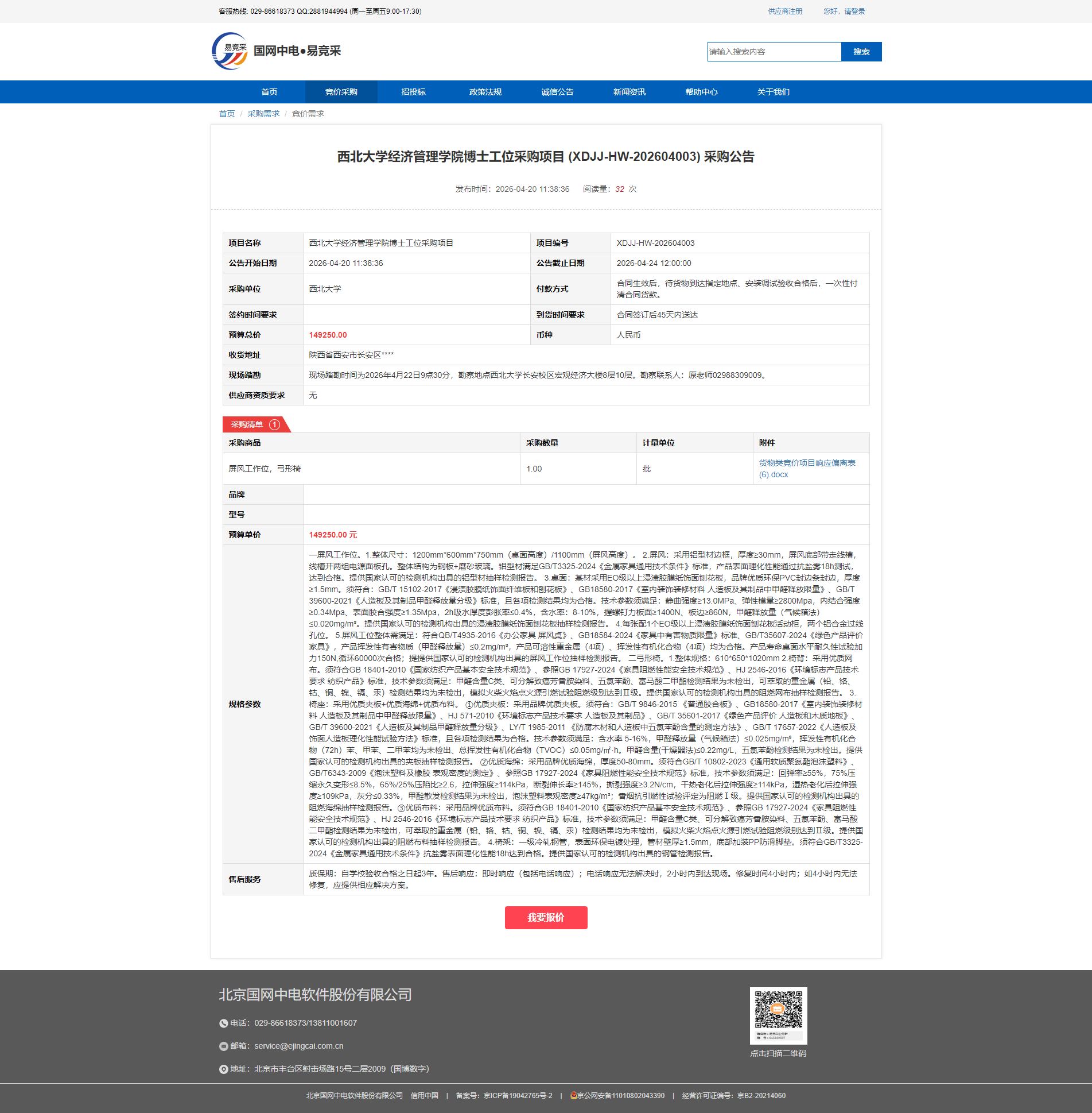 西北大学经济管理学院博士工位采购项目 (XDJJ-HW-202604003) 采购公告