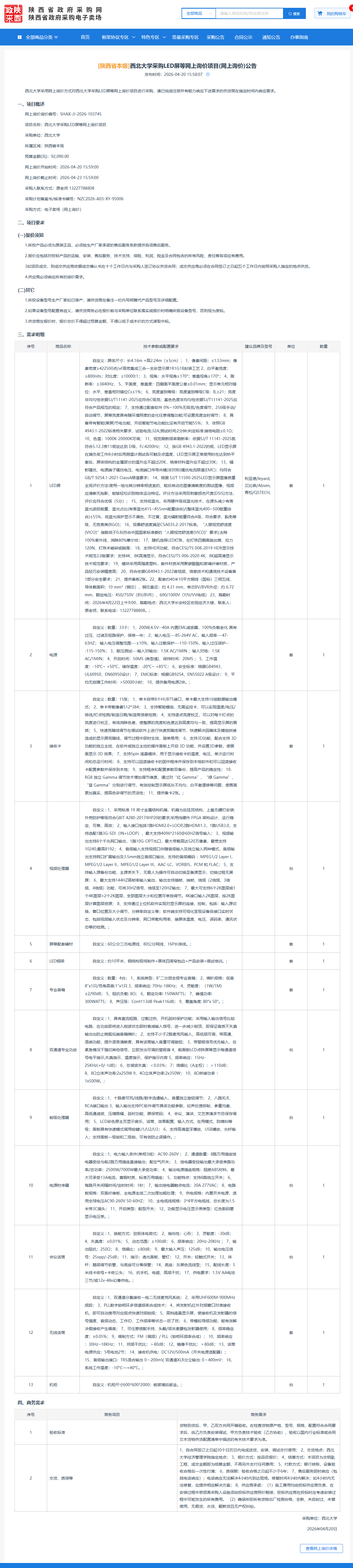 西北大学采购LED屏等网上询价项目(网上询价)公告