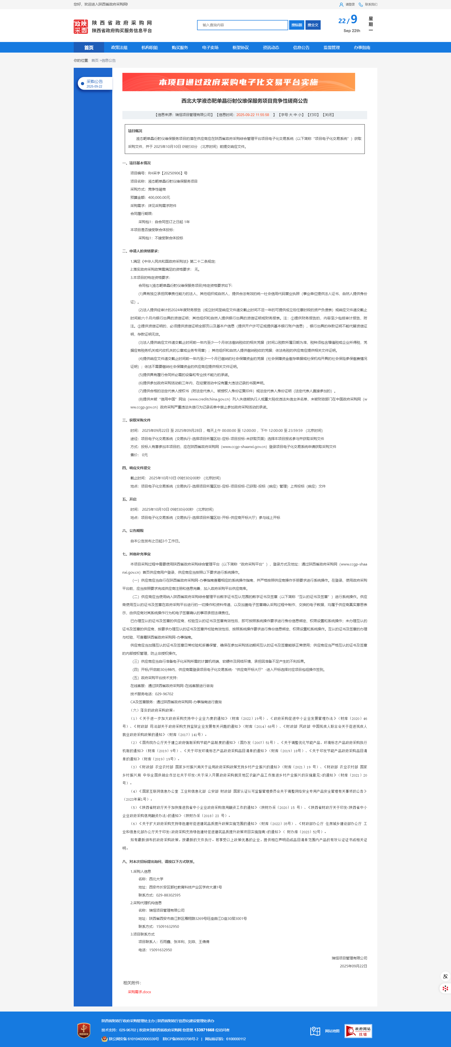西北大学液态靶单晶衍射仪维保服务项目竞争性磋商公告