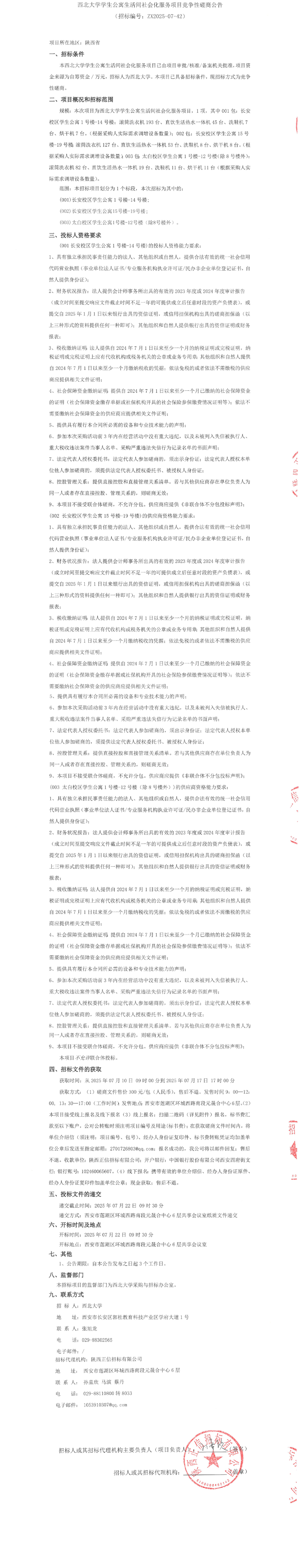 西北大学学生公寓生活间社会化服务项目竞争性磋商公告