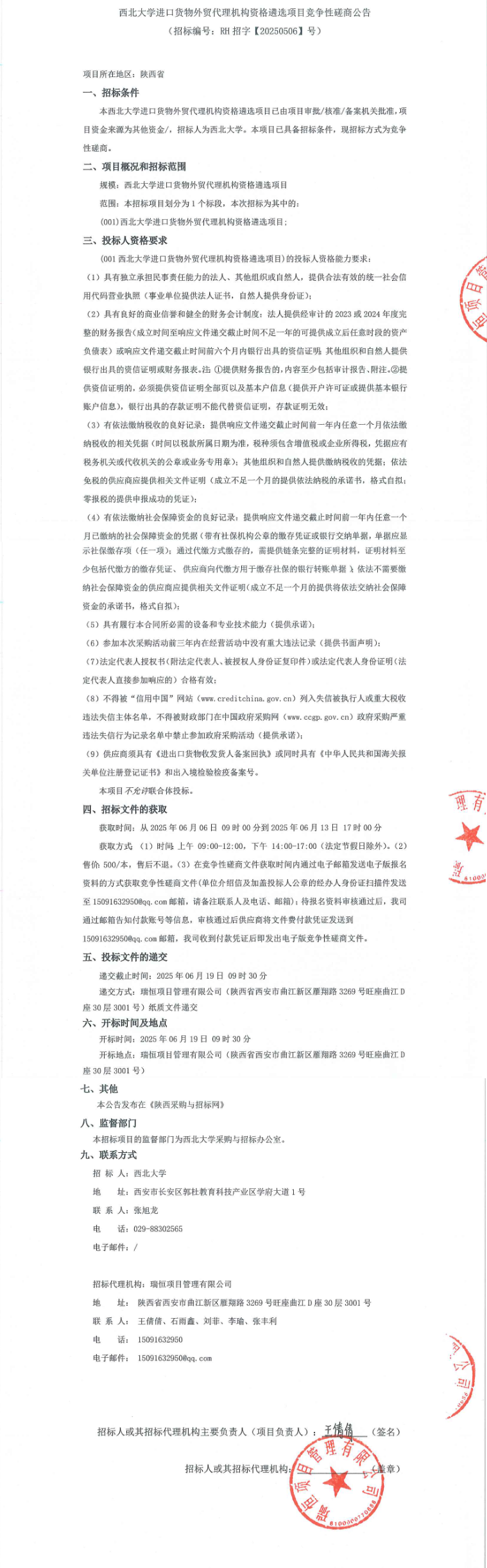 西北大学进口货物外贸代理机构资格遴选项目竞争性磋商公告