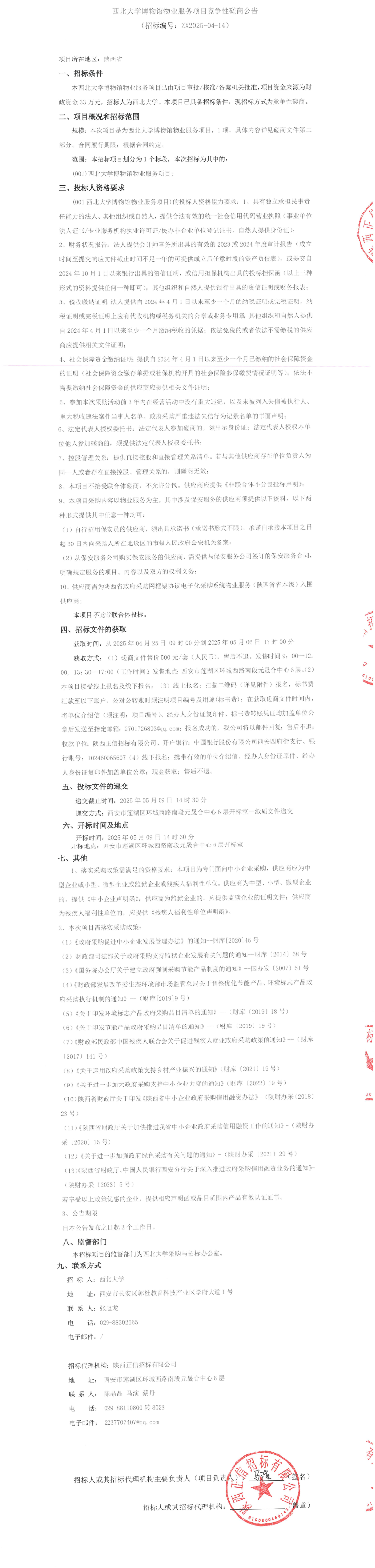 西北大学博物馆物业服务项目竞争性磋商公告