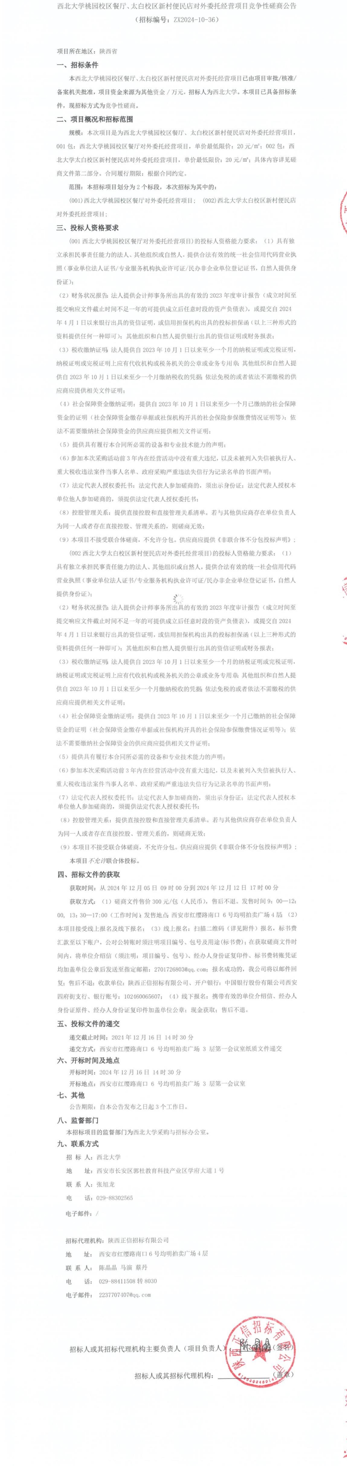 西北大学桃园校区餐厅、太白校区新村便民店对外委托经营项目竞争性磋商公告