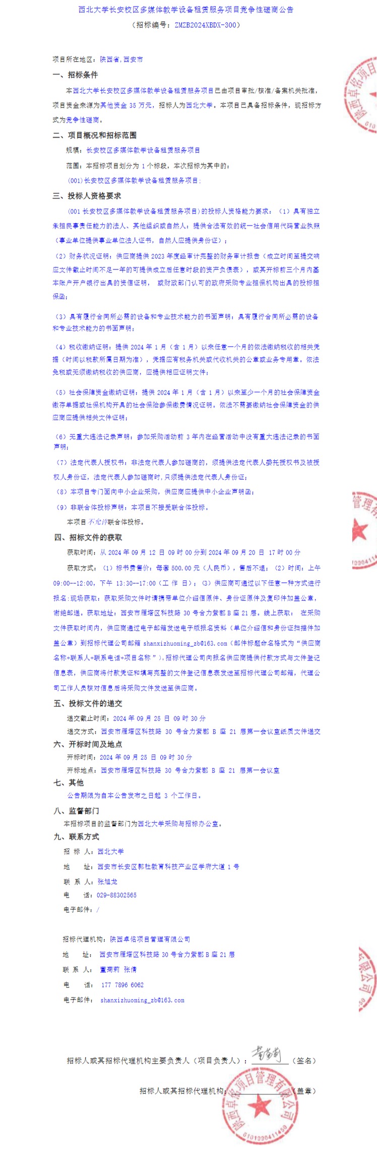 西北大学长安校区多媒体教学设备租赁服务项目竞争性磋商公告