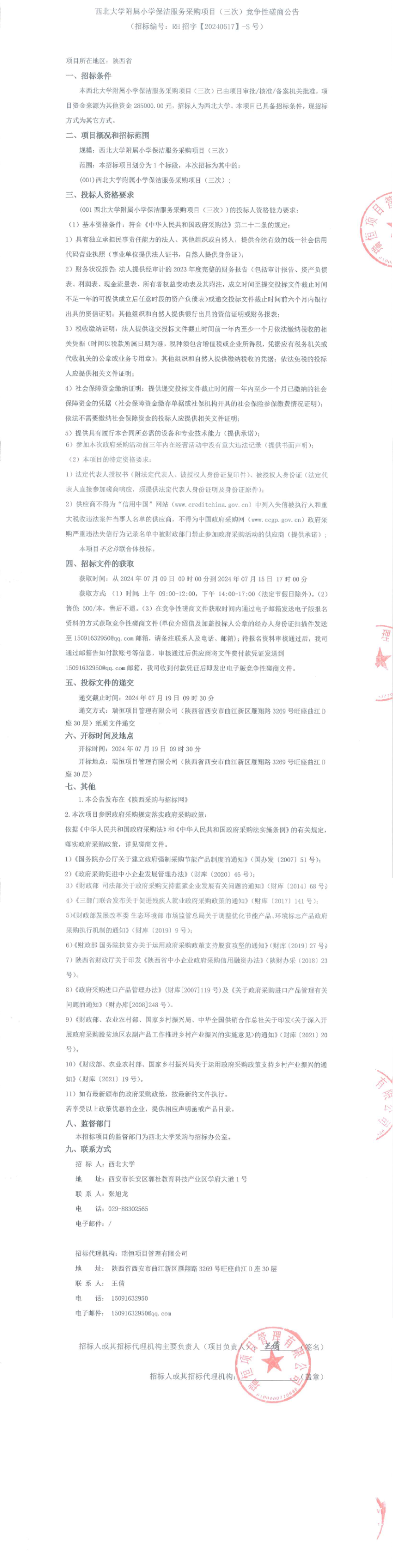 西北大学附属小学保洁服务采购项目(三次)竞争性磋商公告