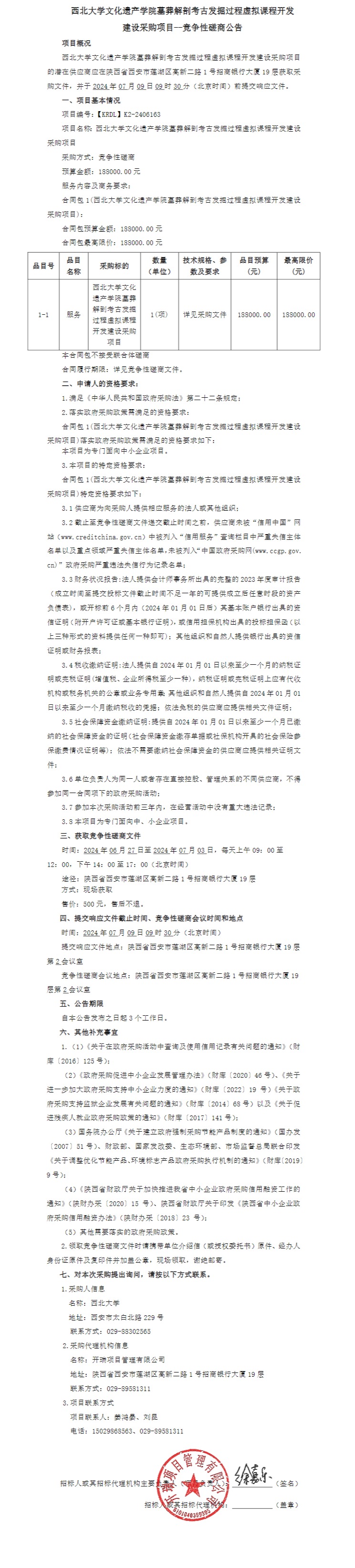 西北大学文化遗产学院墓葬解剖考古发掘过程虚拟课程开发建设采购项目竞争性磋商公告