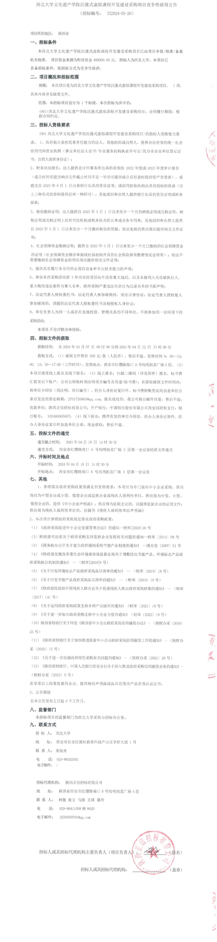 西北大学文化遗产学院沉漫式虚拟课程开发建设采购项目竞争性磋商公告