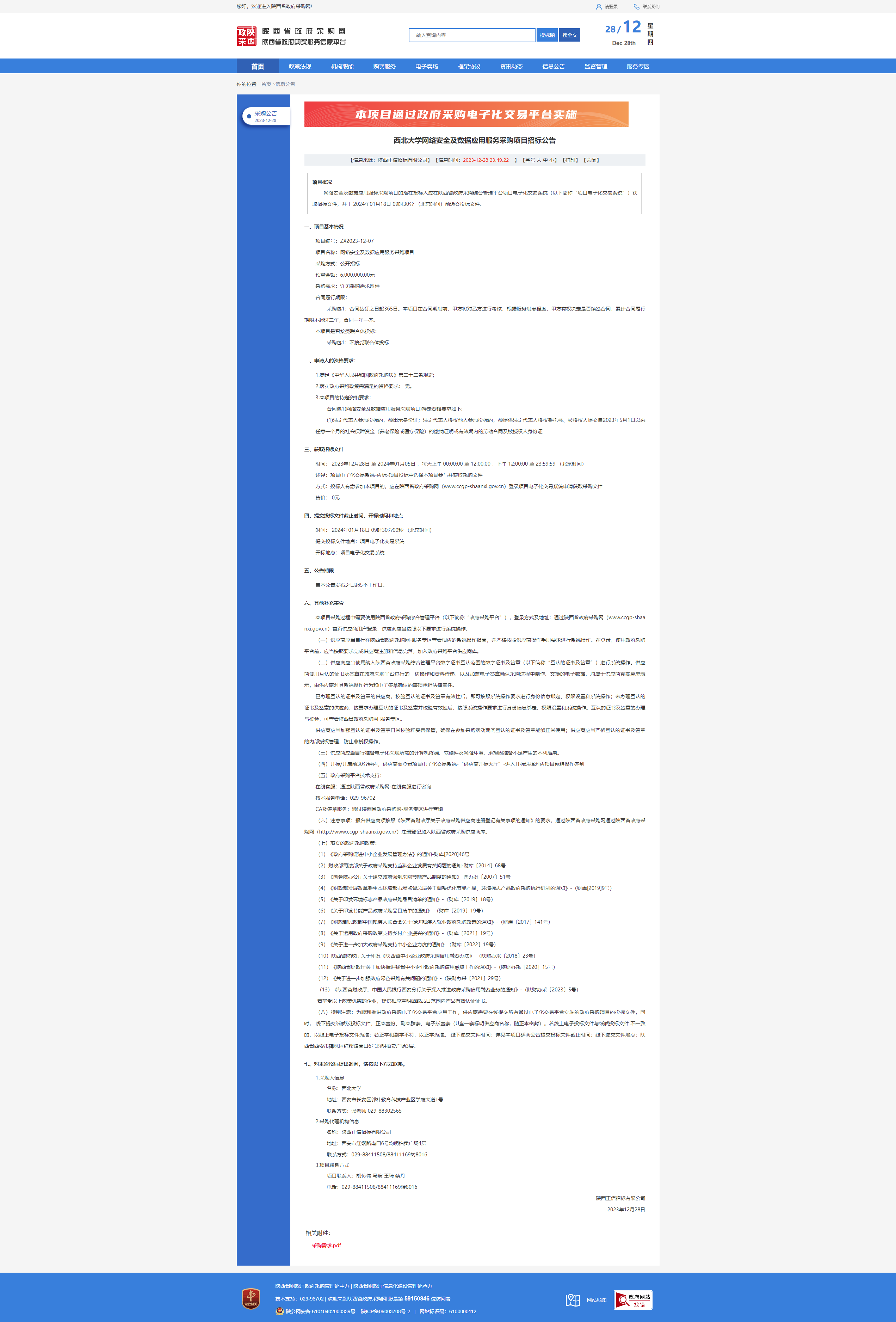 西北大学网络安全及数据应用服务采购项目招标公告