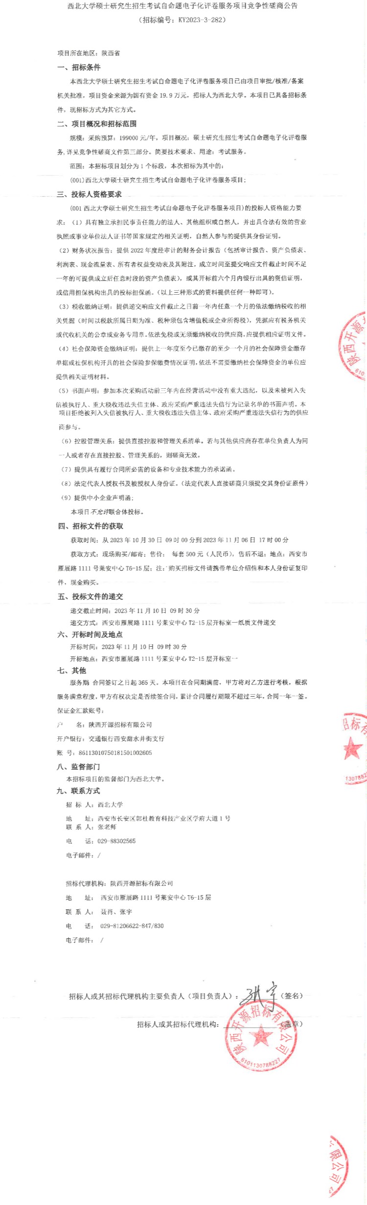 西北大学硕士研究生招生考试自命题电子化评卷服务项目竞争性磋商公告