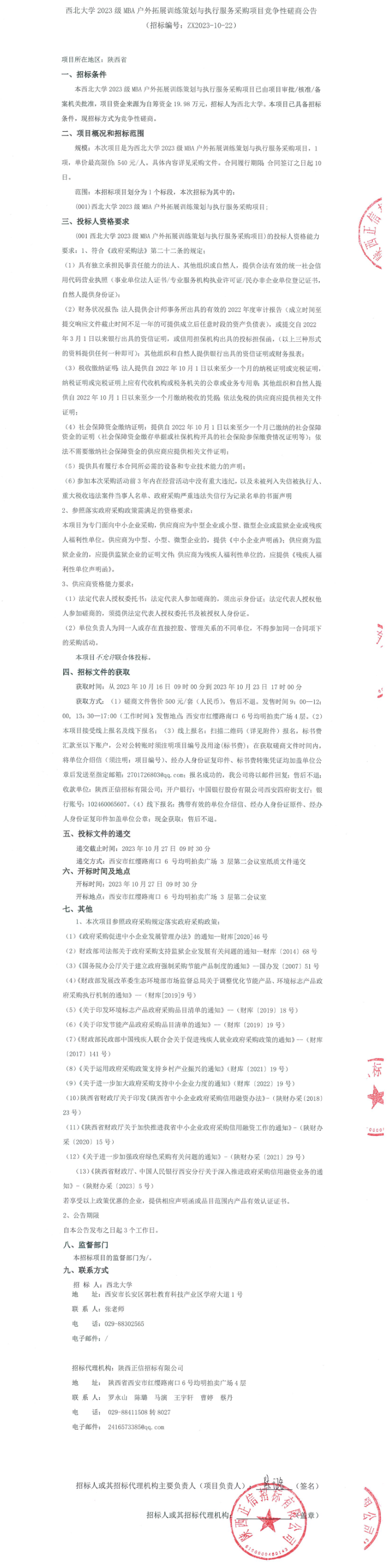西北大学2023级MBA户外拓展训练策划与执行服务采购项目竞争性磋商公告