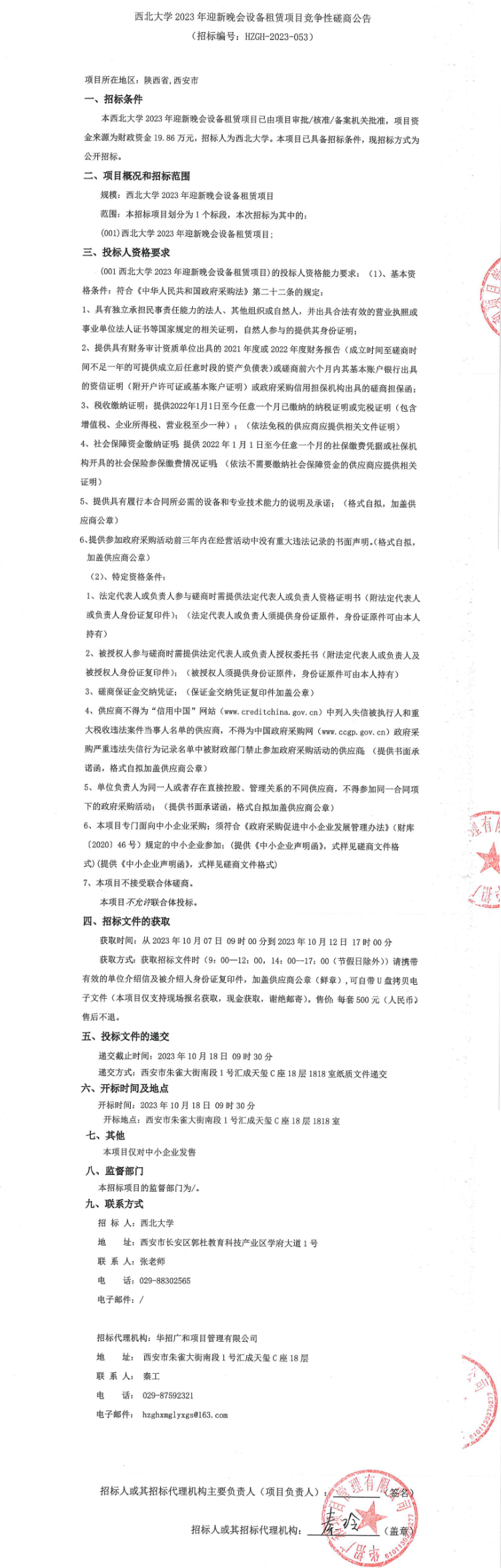 西北大学2023年迎新晚会设备租赁项目竞争性磋商公告