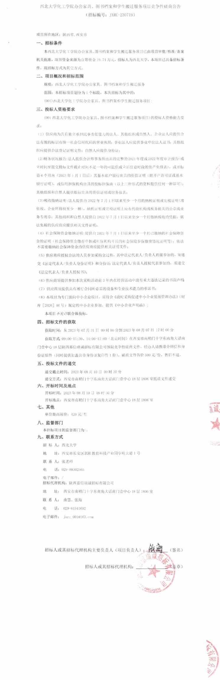 西北大学化工学院办公家具、图书档案和学生搬迁服务项目竞争性磋商公告