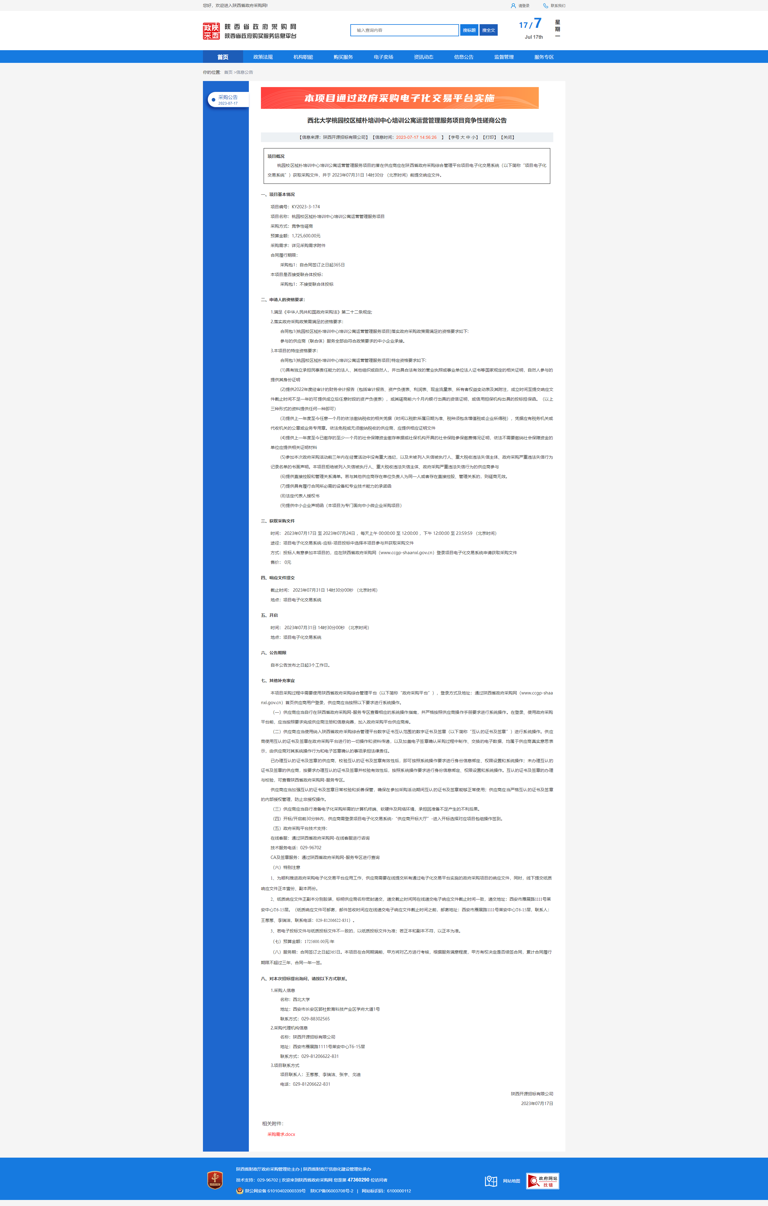 西北大学桃园校区棫朴培训中心培训公寓运营管理服务项目竞争性磋商公告