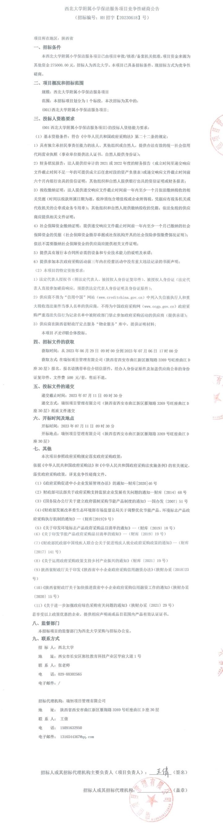 西北大学附属小学保洁服务项目竞争性磋商公告