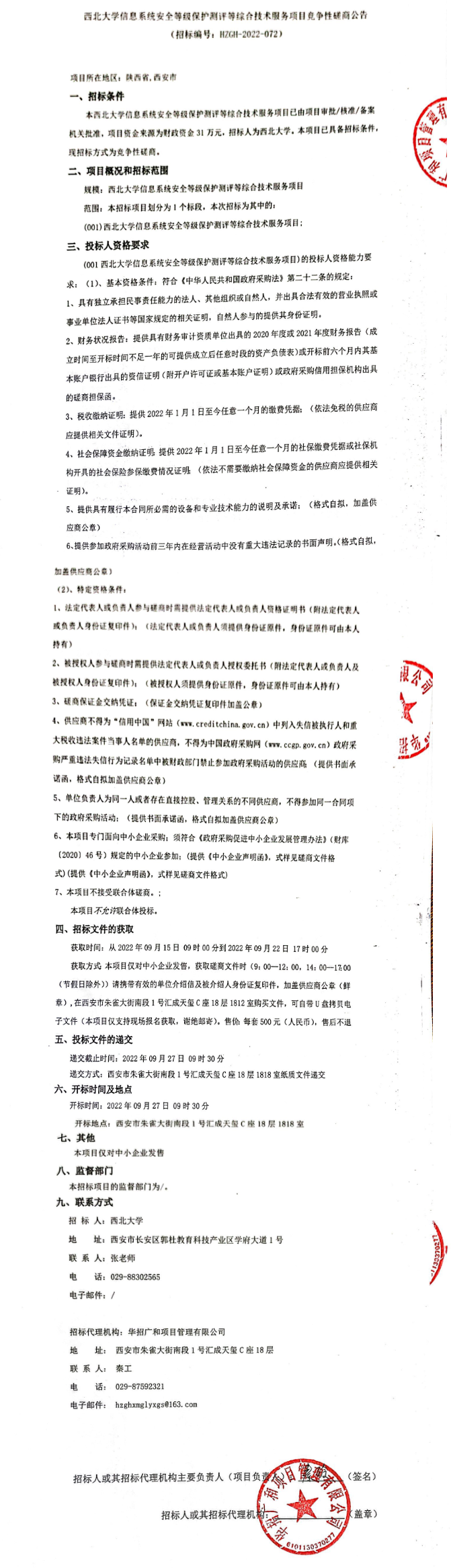 西北大学信息系统安全等级保护测评等综合技术服务项目竞争性磋商公告