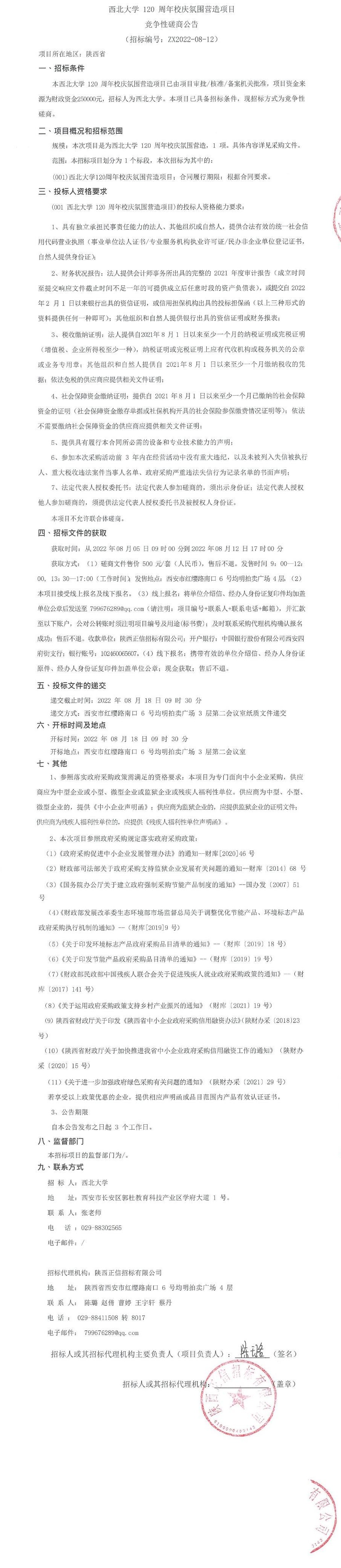 西北大学120周年校庆氛围营造项目竞争性磋商公告