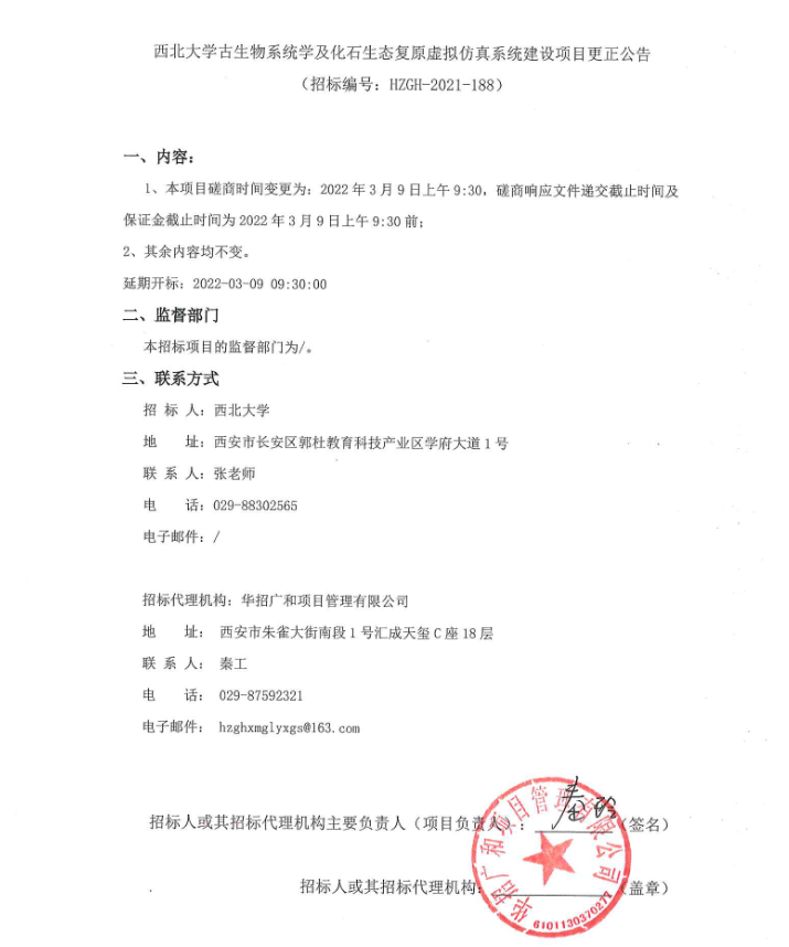 关于西北大学古生物系统学及化石生态复原虚拟仿真系统建设项目更正公告
