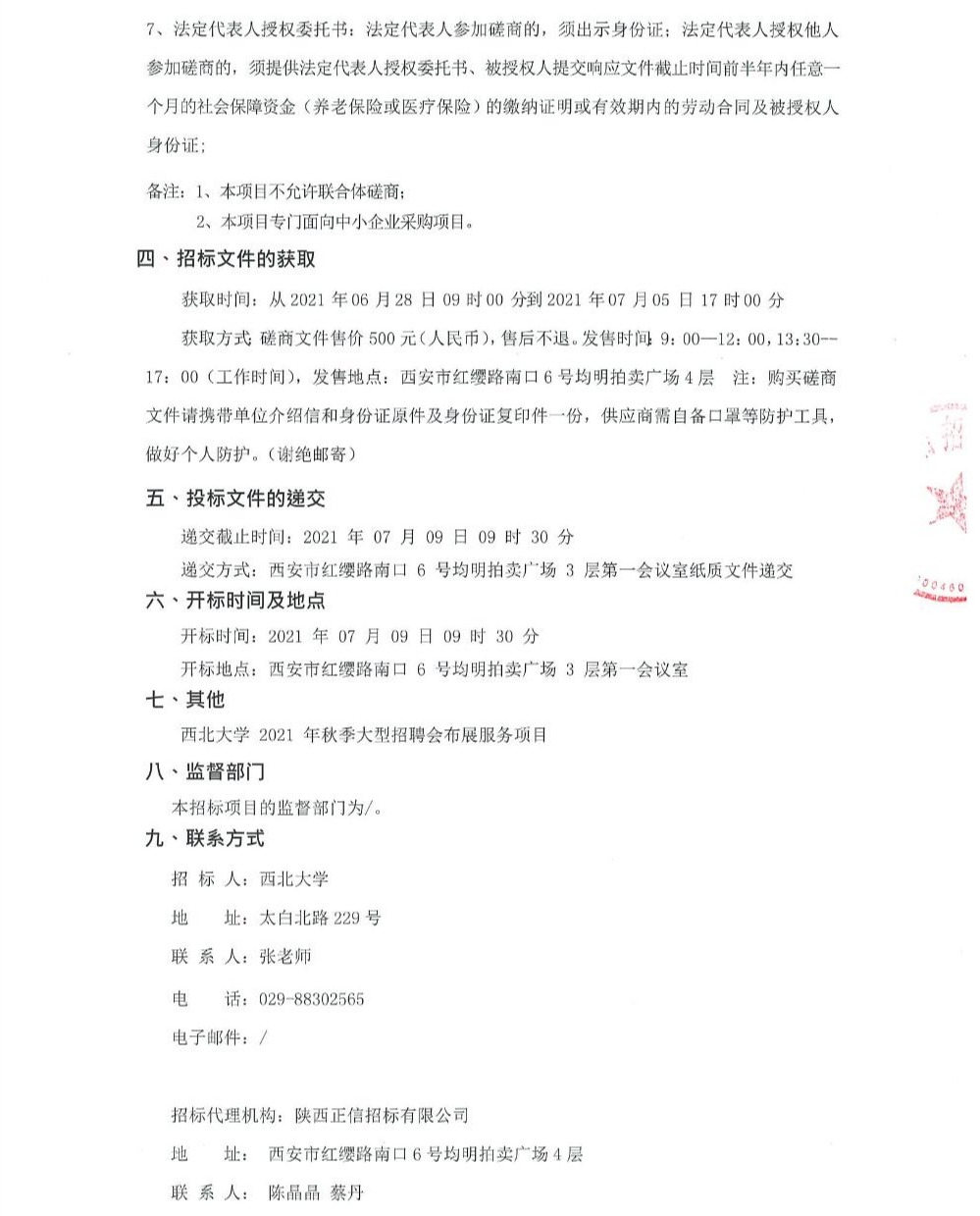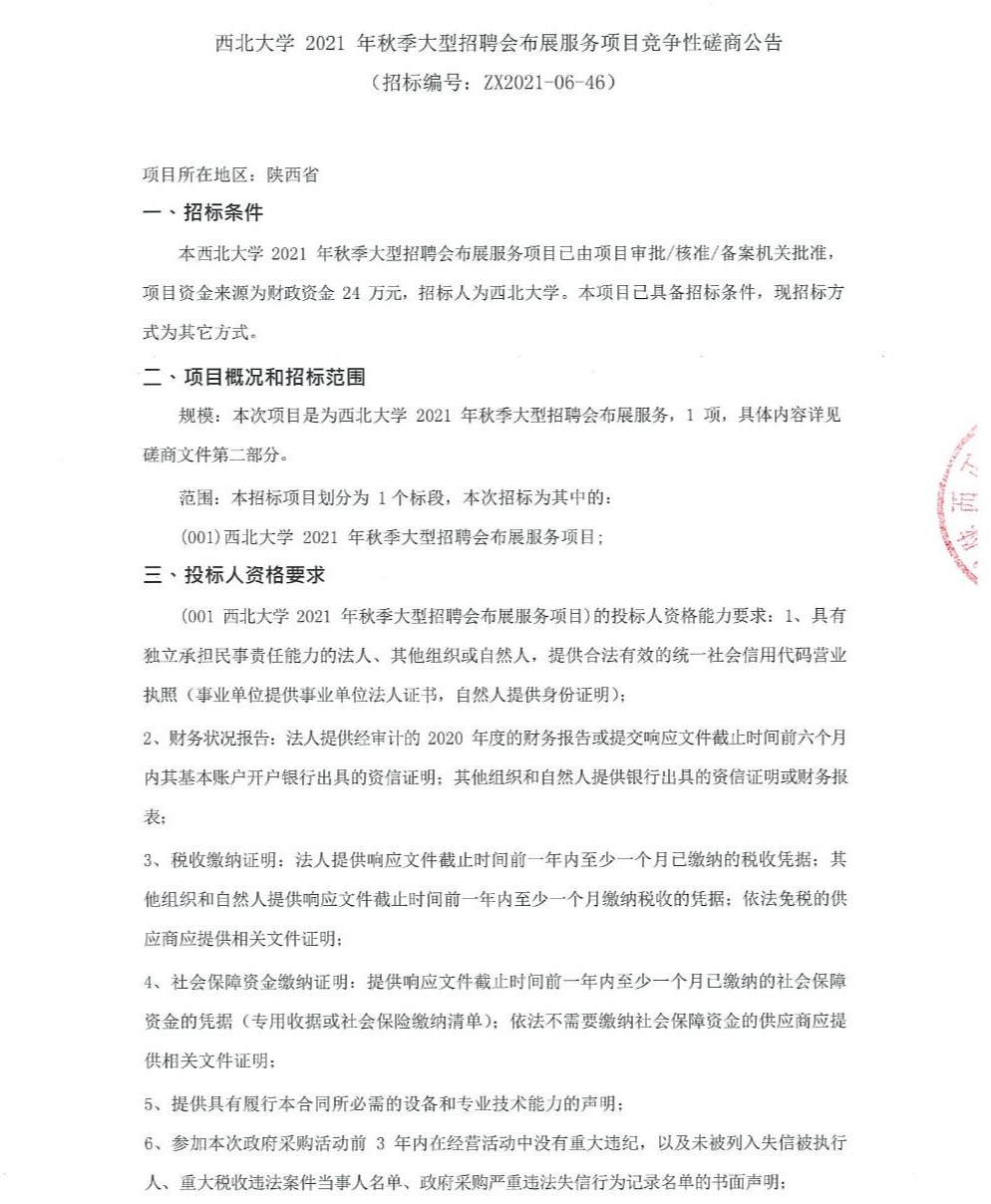 西北大学2021年秋季大型招聘会布展服务项目竞争性磋商公告
