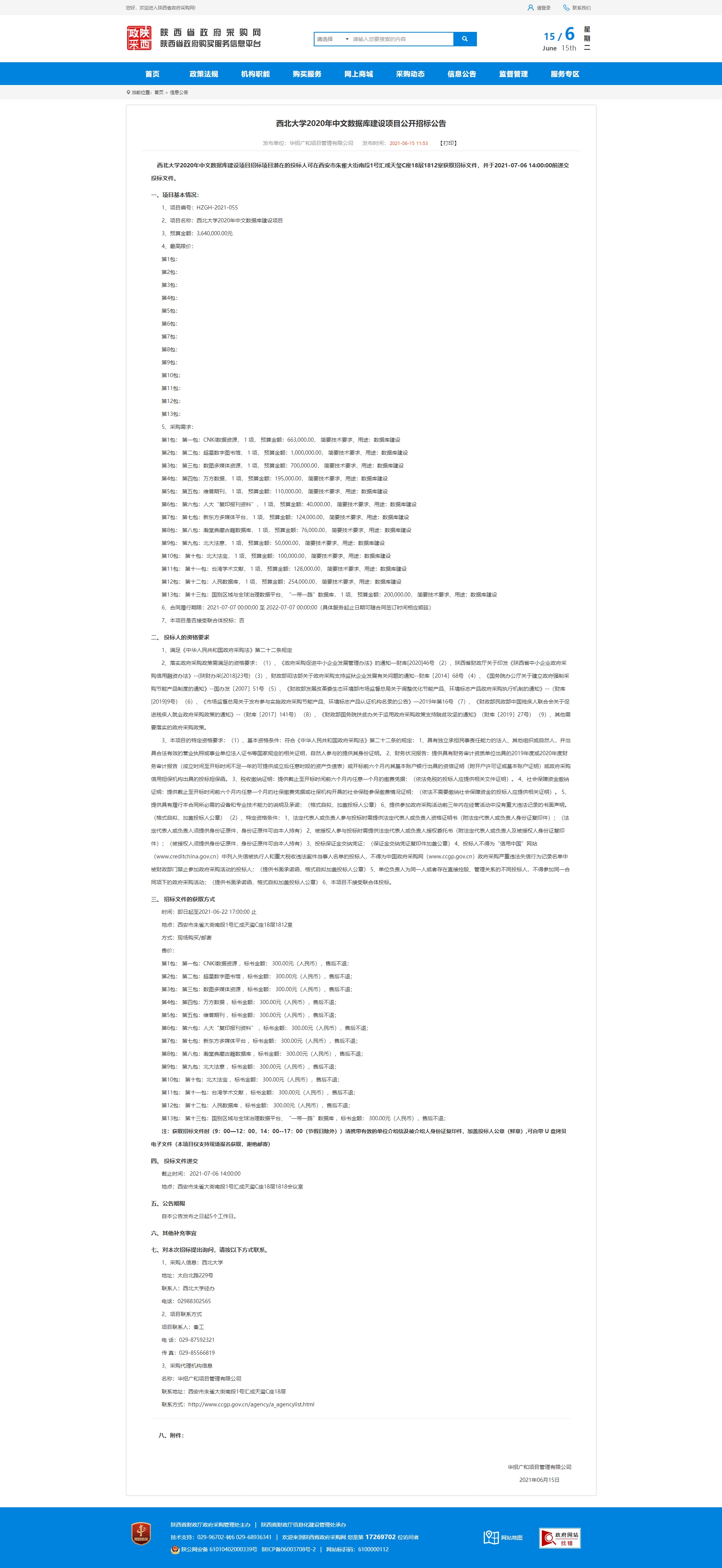 西北大学2020年中文数据库建设项目公开招标公告