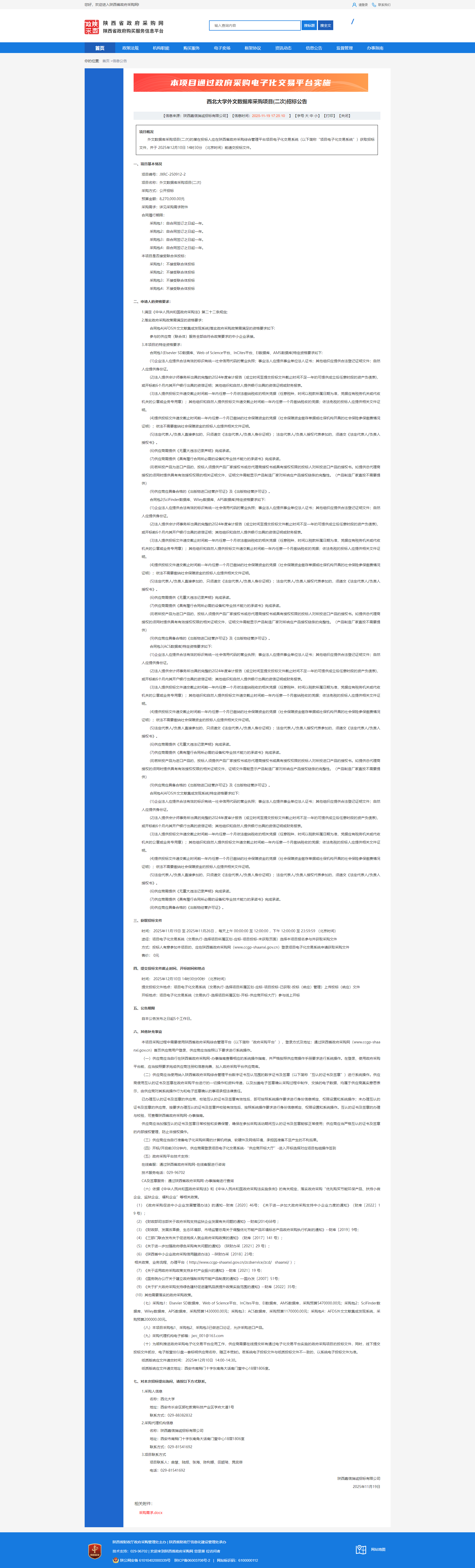 西北大学外文数据库采购项目(二次)招标公告