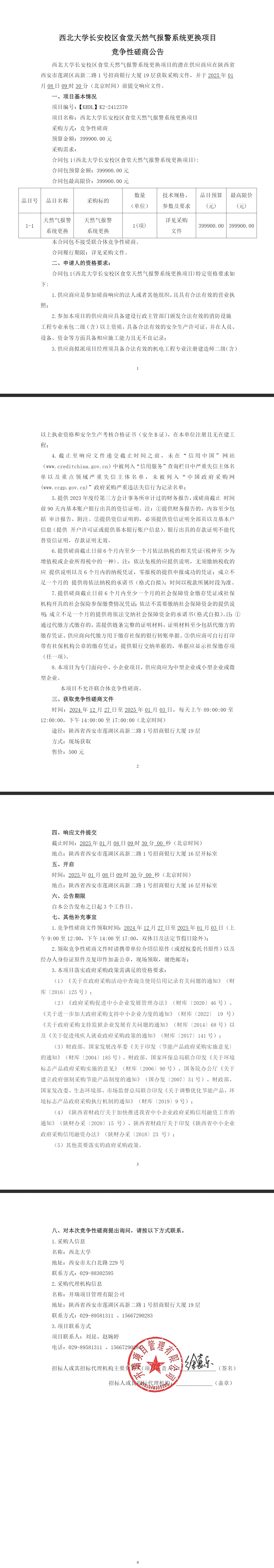 西北大学长安校区食堂天然气报警系统更换项目竞争性磋商公告