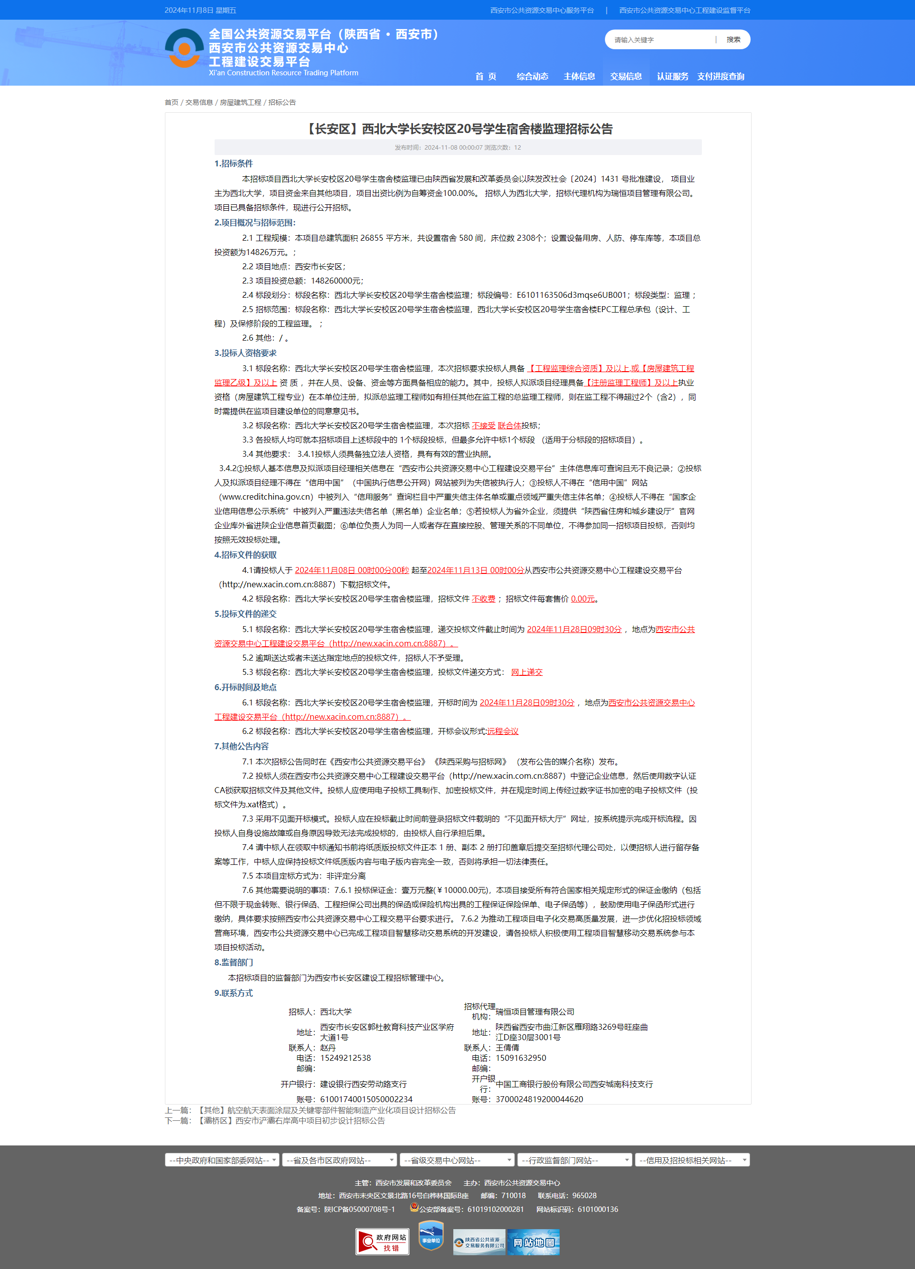 西北大学长安校区20号学生宿舍楼监理招标公告
