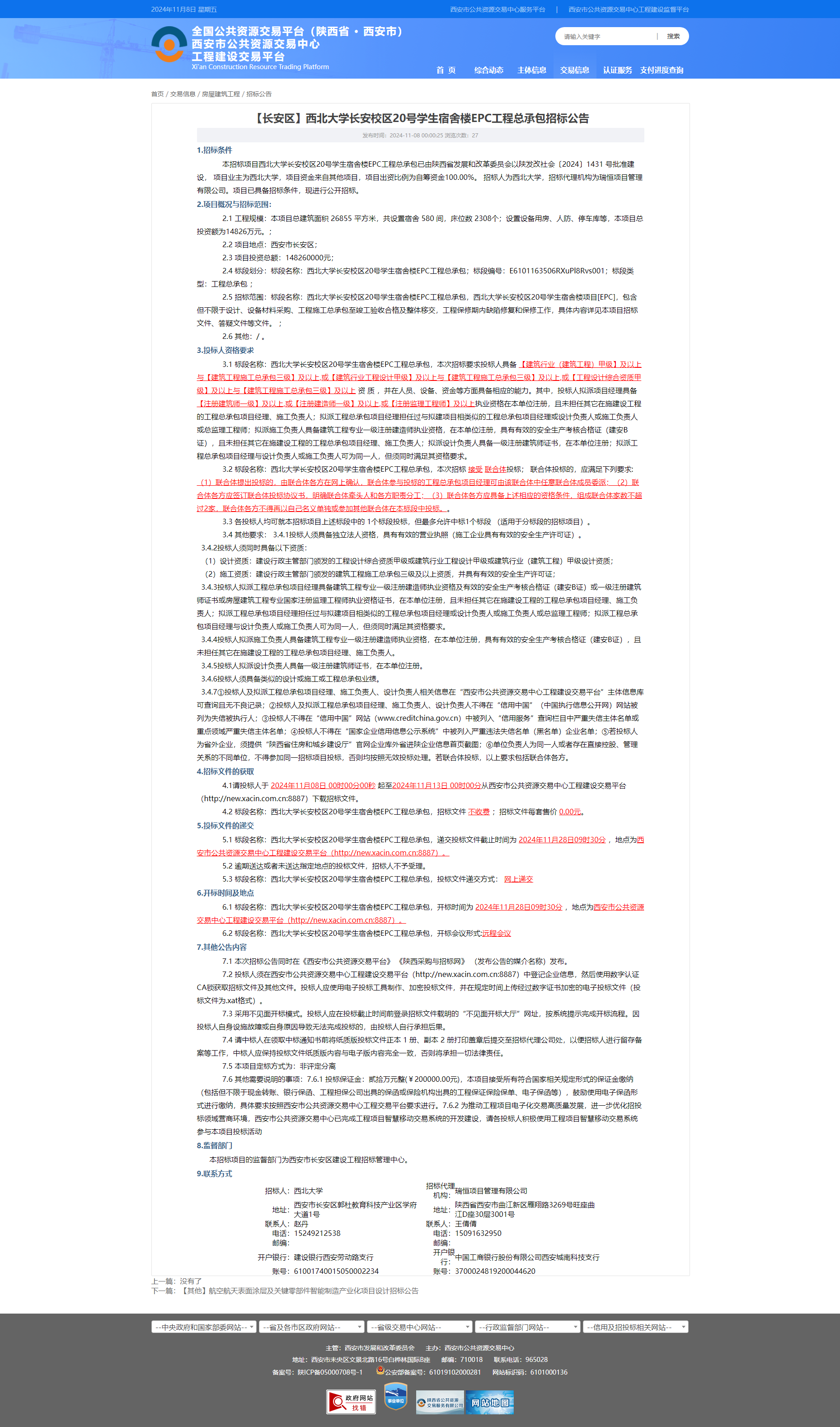 西北大学长安校区20号学生宿舍楼EPC工程总承包招标公告