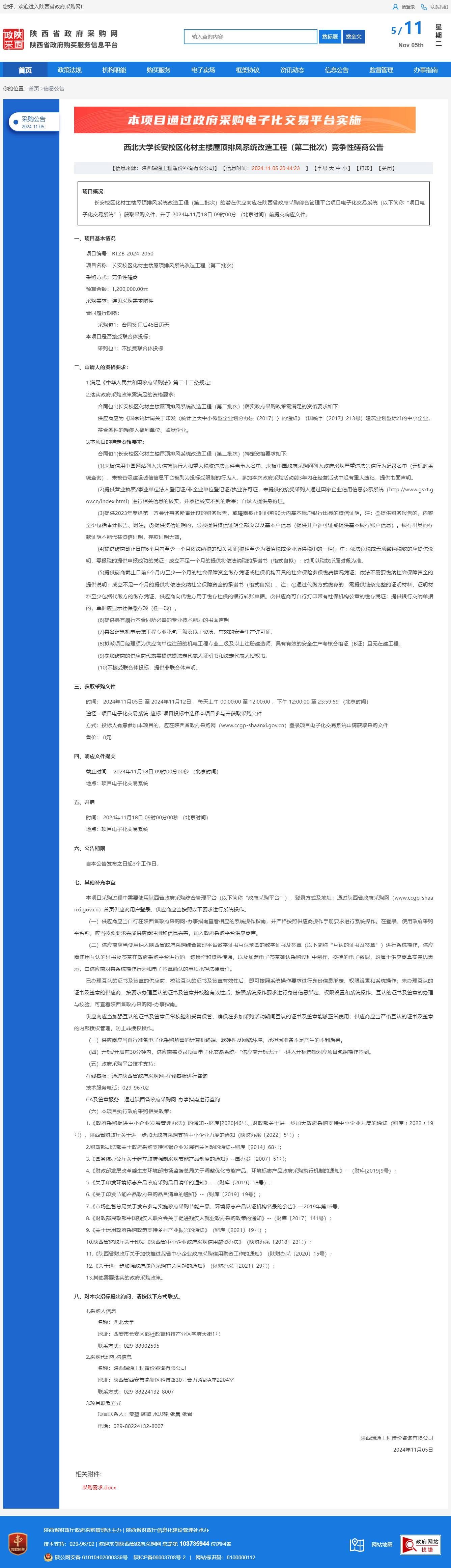 西北大学长安校区化材主楼屋顶排风系统改造工程(第二批次)竞争性磋商公告