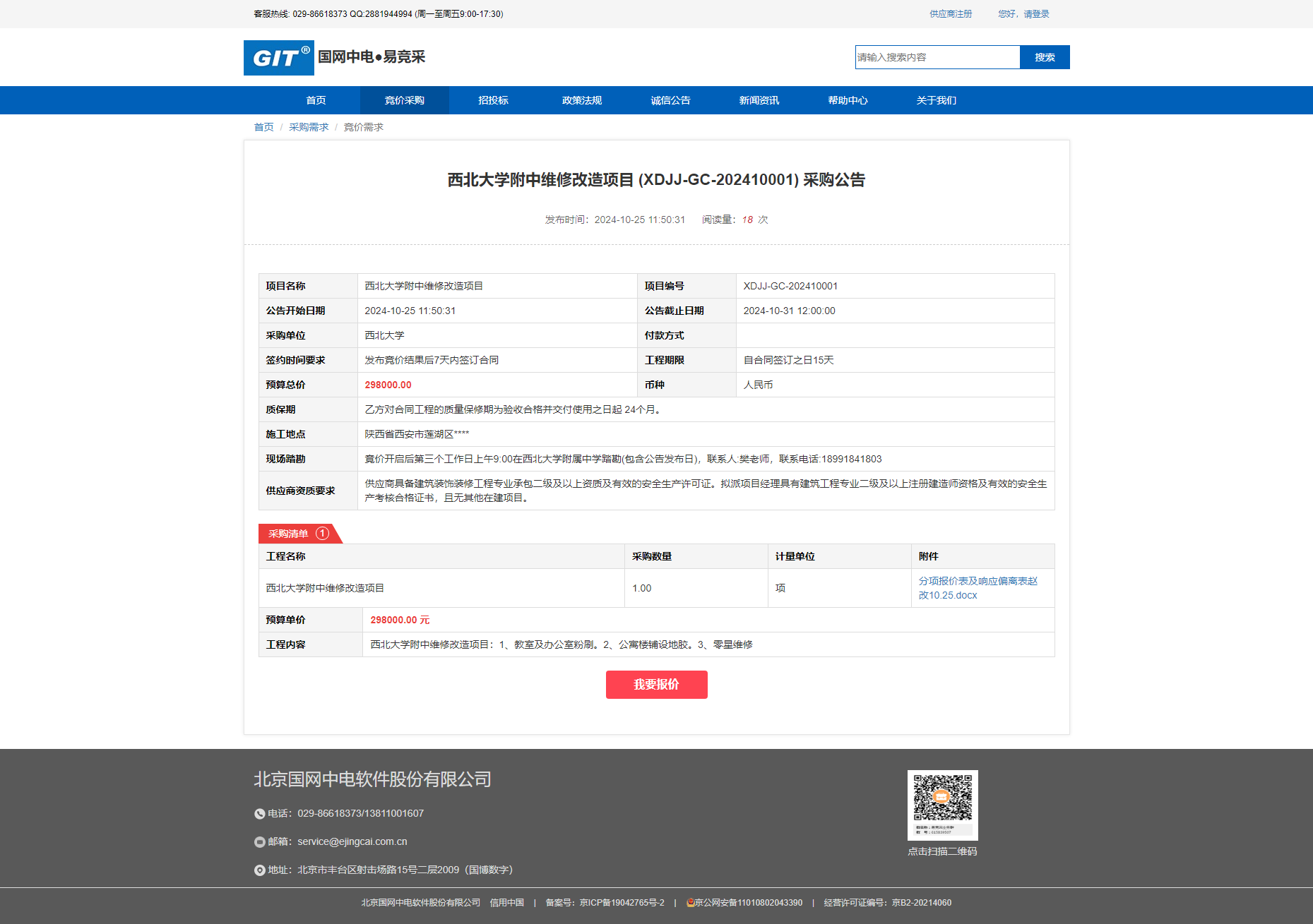 西北大学附中维修改造项目 (XDJJ-GC-202410001) 采购公告