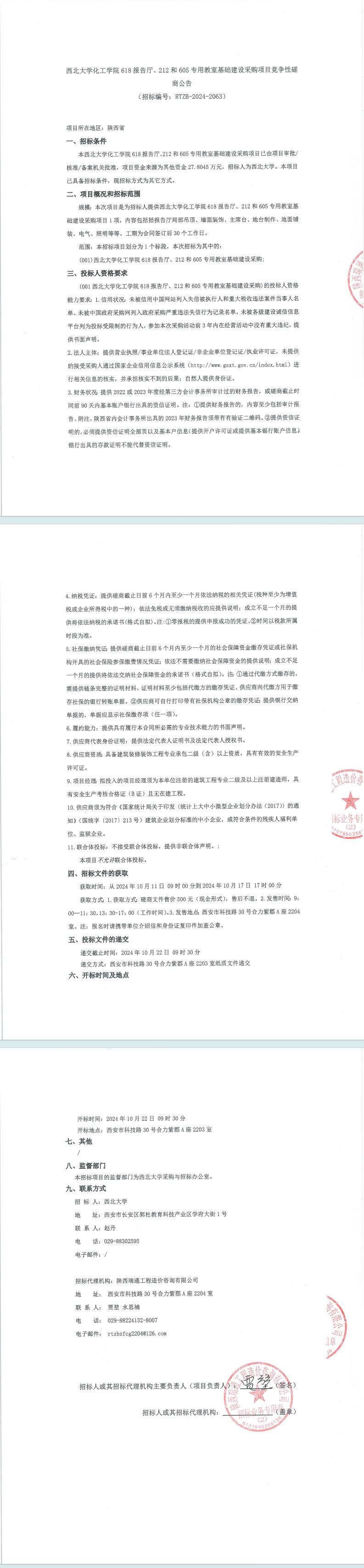 西北大学化工学院618报告厅、212和605专用教室基础建设采购项目竞争性磋商公告