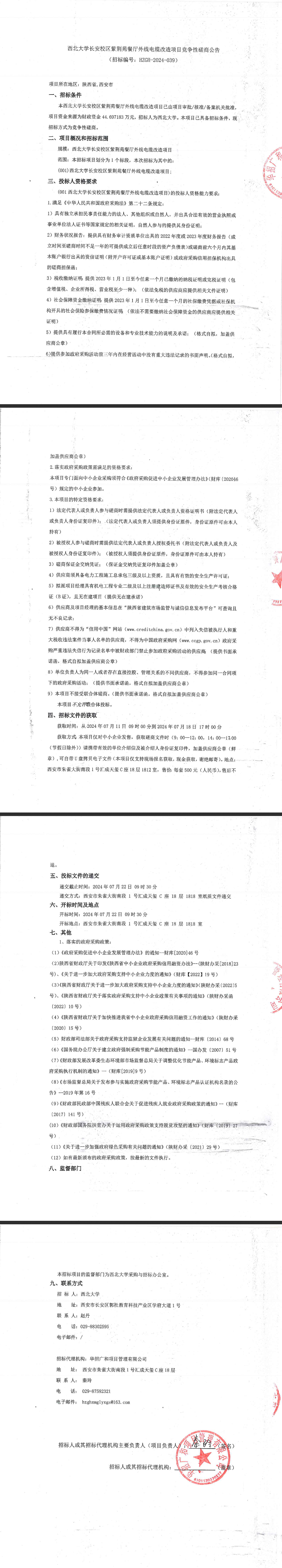 西北大学长安校区紫荆苑餐厅外线电缆改造项目竞争性磋商公告