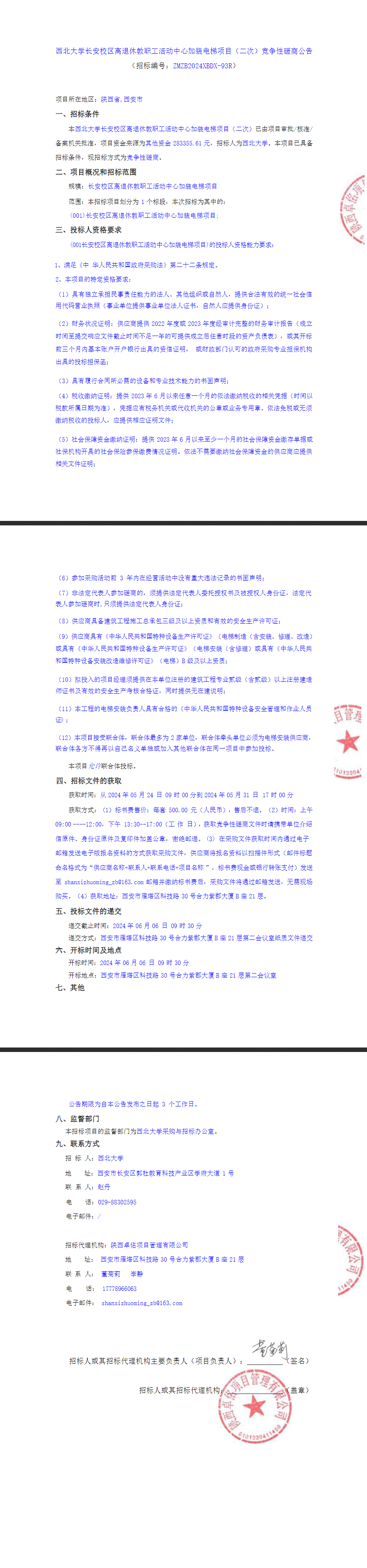 西北大学长安校区离退休教职工活动中心加装电梯项目(二次)竞争性磋商公告