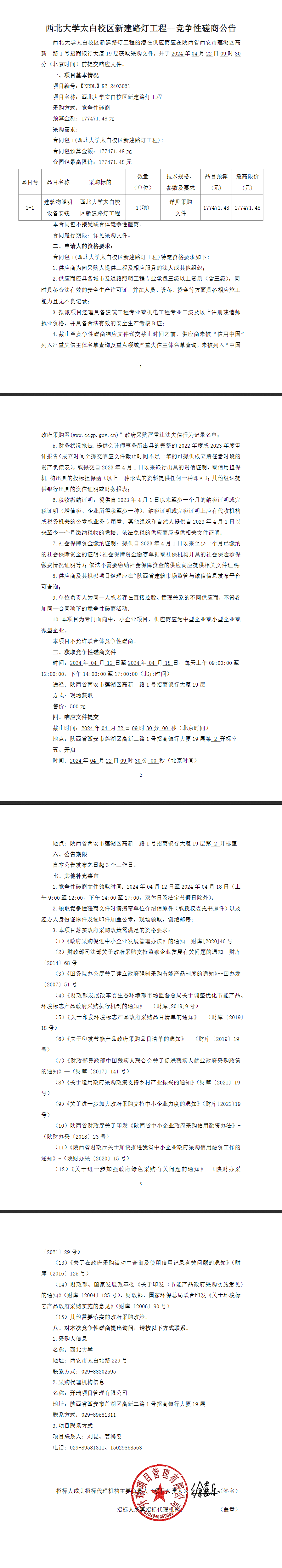 西北大学太白校区新建路灯工程竞争性磋商公告