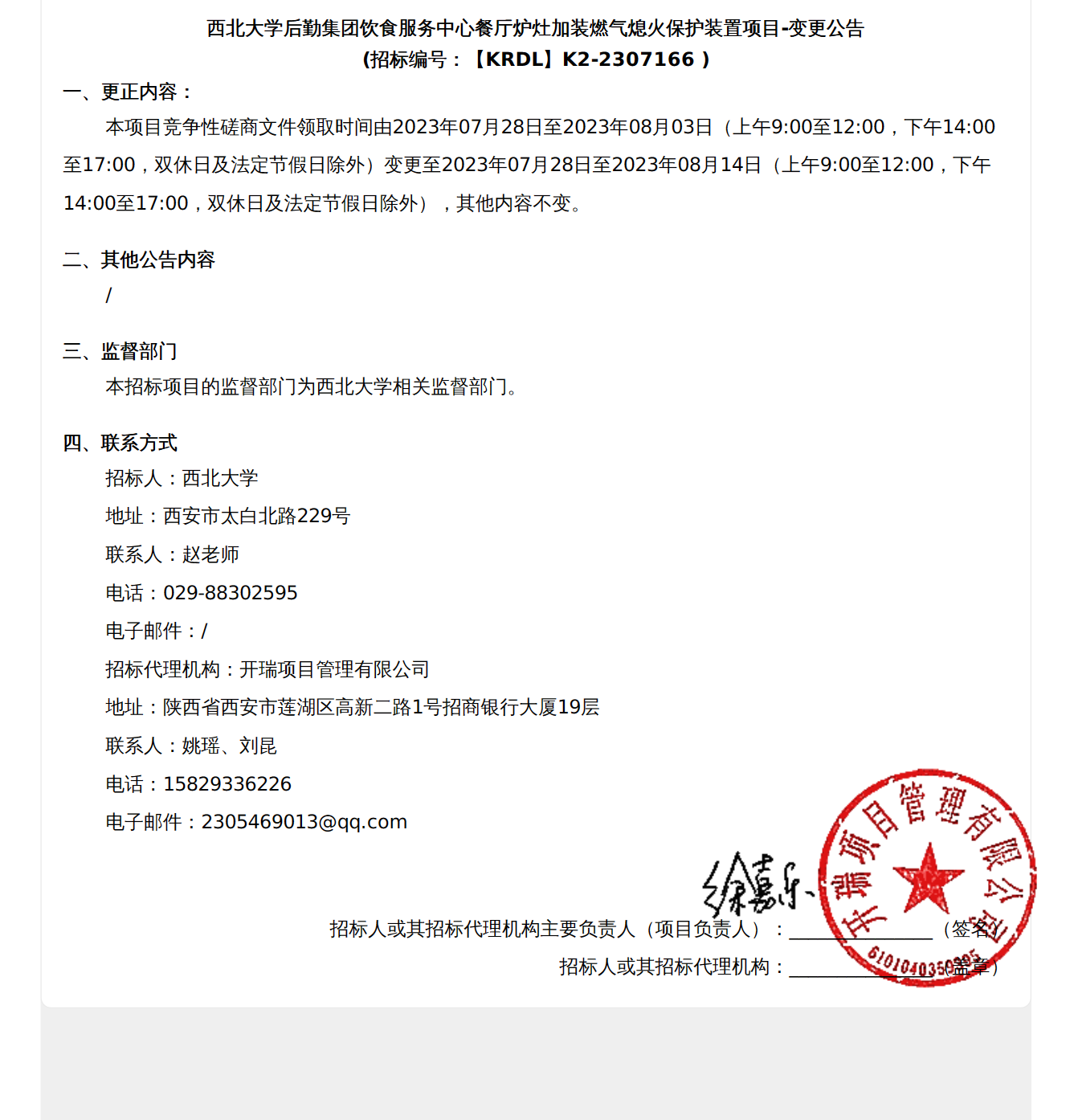 西北大学后勤集团饮食服务中心餐厅炉灶加装燃气熄火保护装置项目-变更公告