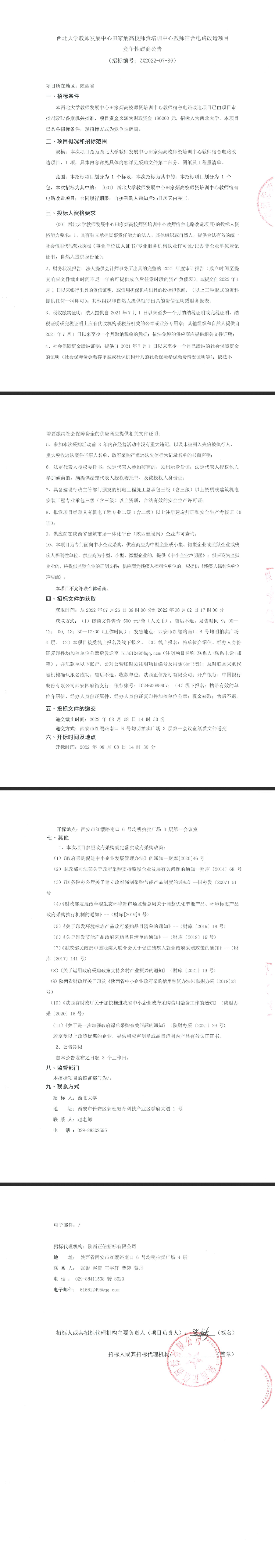 西北大学教师发展中心田家炳高校师资培训中心教师宿舍电路改造项目竞争性磋商公告