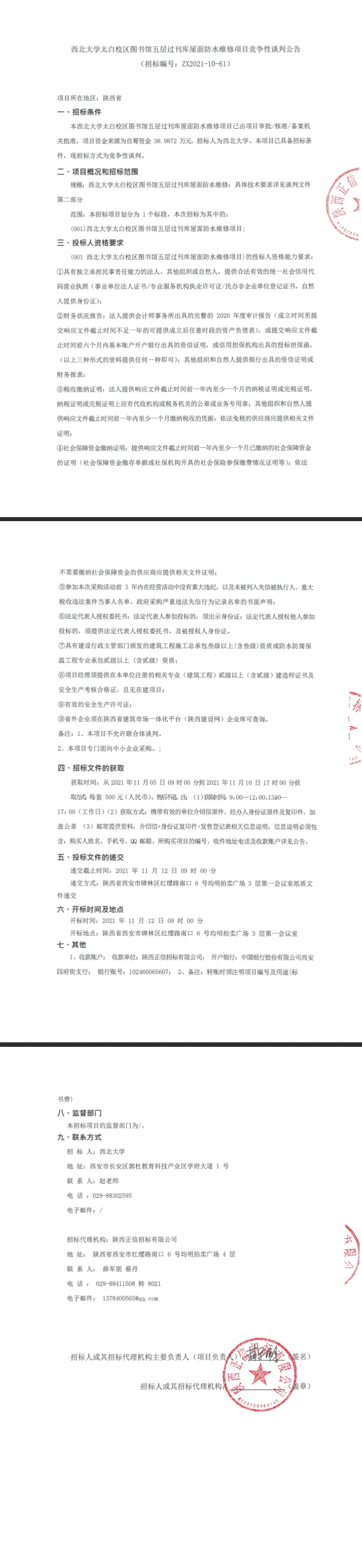 西北大学太白校区图书馆五层过刊库屋面防水维修项目竞争性谈判公告
