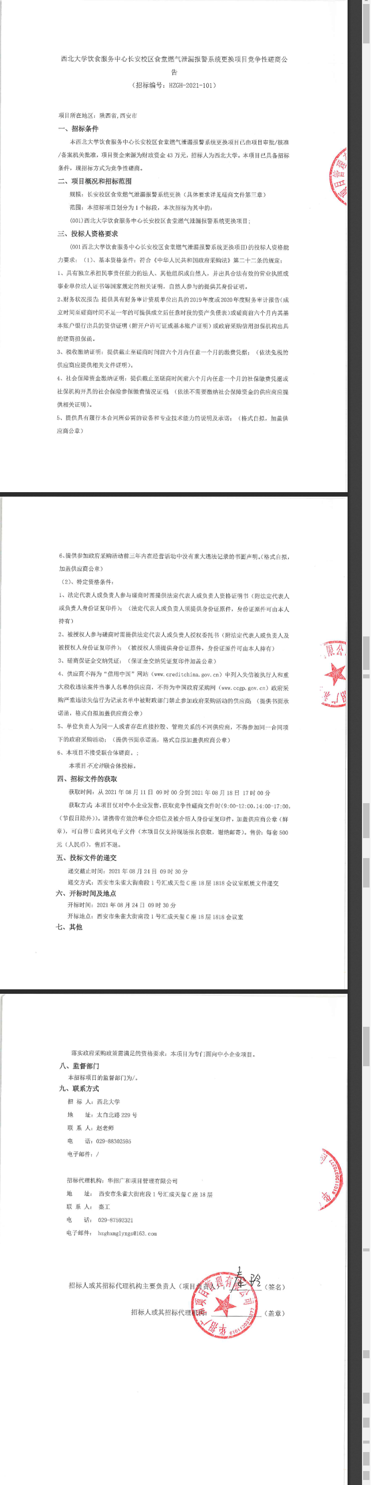 西北大学饮食服务中心长安校区食堂燃气泄漏报警系统更换项目竞争性磋商公告