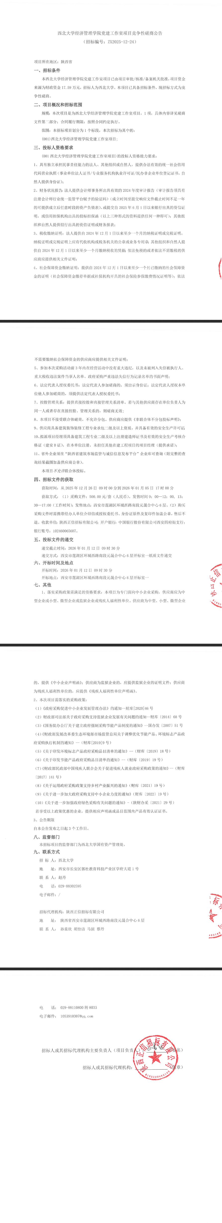 西北大学经济管理学院党建工作室项目竞争性磋商公告