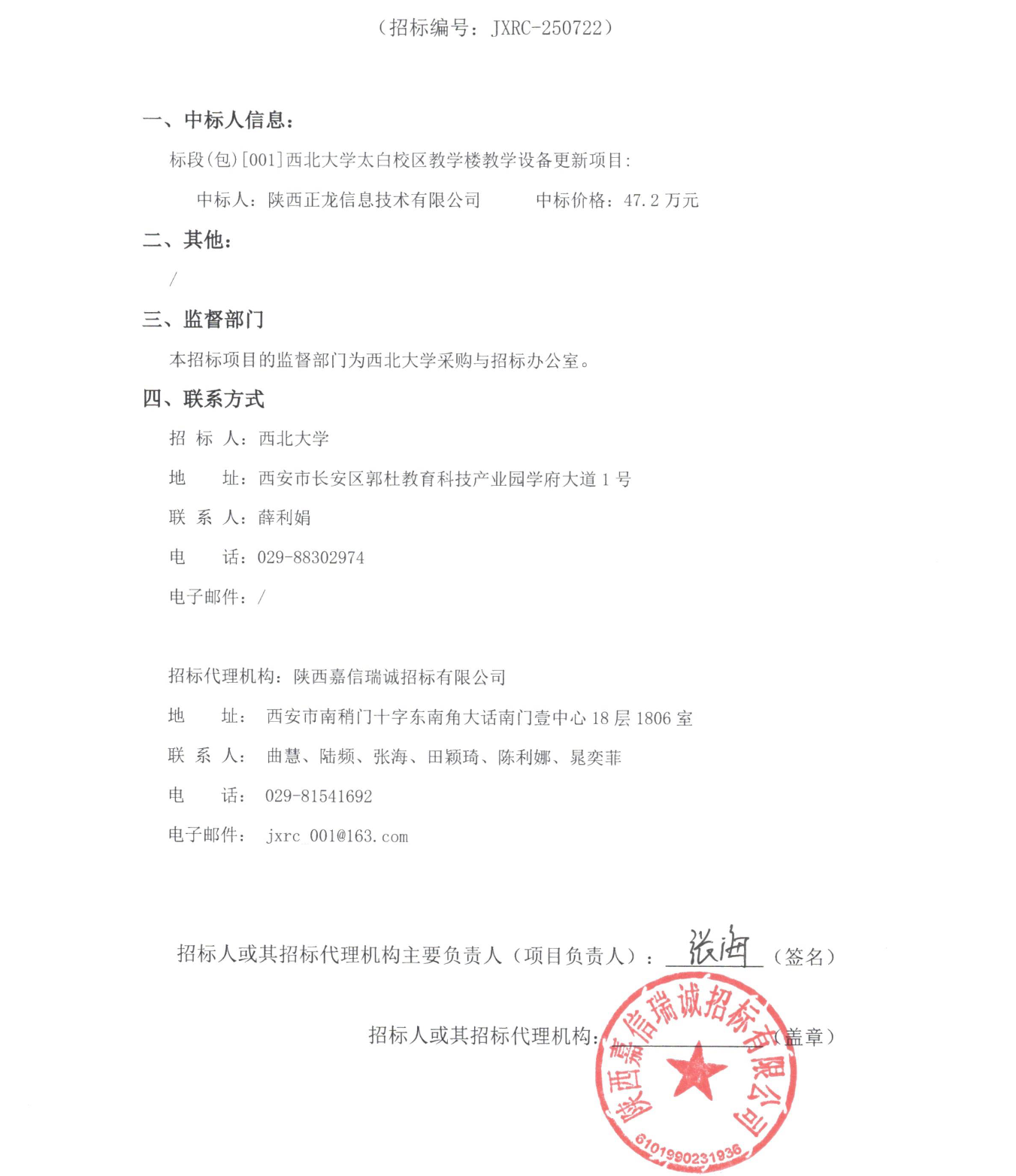 西北大学太白校区教学楼教学设备更新项目成交结果公告