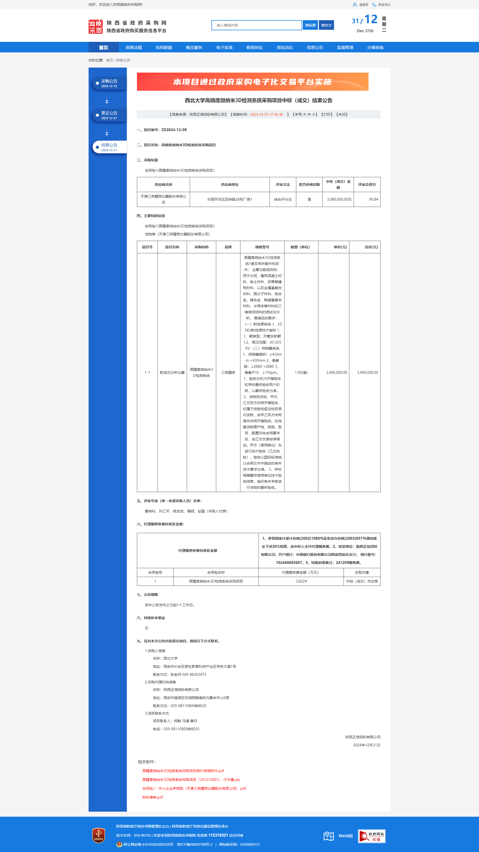 西北大学高精度微纳米3D检测系统采购项目中标(成交)结果公告