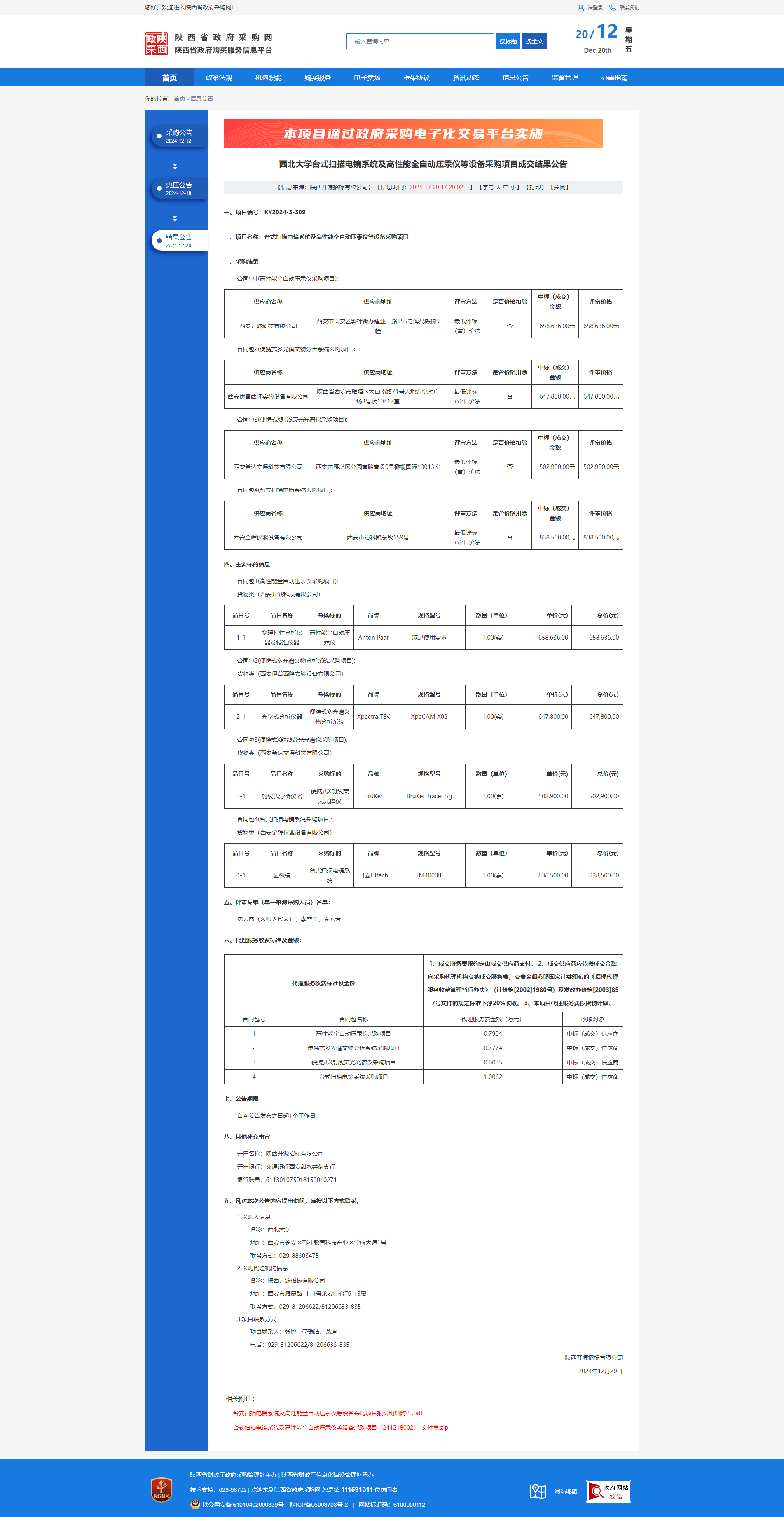 西北大学台式扫描电镜系统及高性能全自动压汞仪等设备采购项目成交结果公告