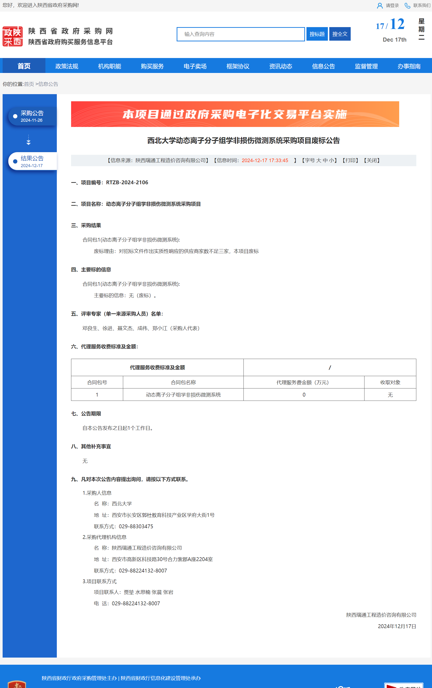 原公告链接:http://www.ccgp-shaanxi.gov.cn/freecms/site/shaanxi/ggxx/info/2024/8a69c5a59218576d0193d3ef8a485b79.html?noticeType=001006¬iceId=a477f0fe-bc5b-11ef-8063-08c0eb20c666