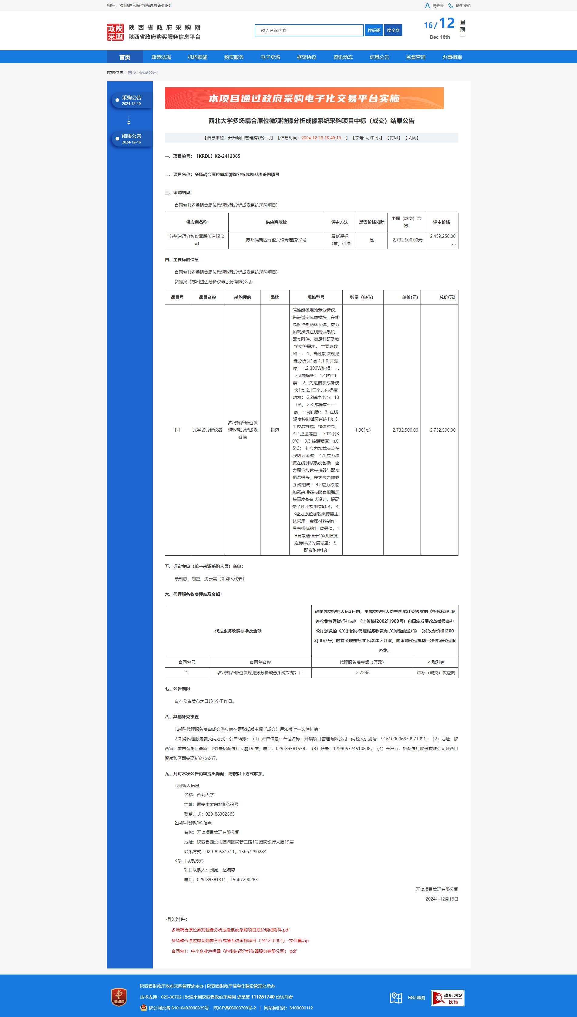 西北大学多场耦合原位微观弛豫分析成像系统采购项目中标(成交)结果公告