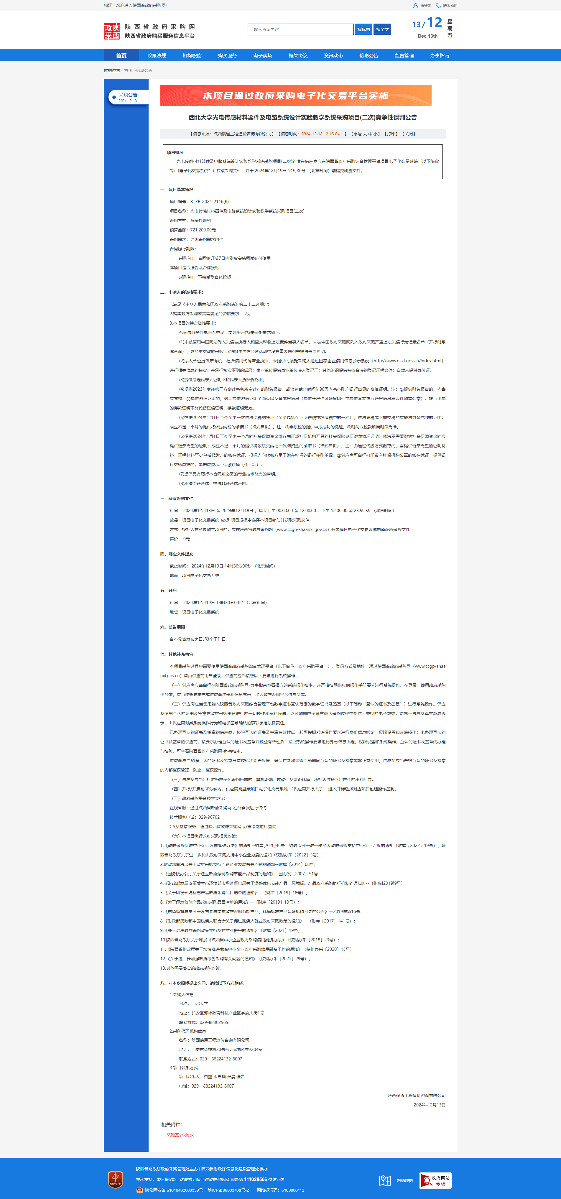 西北大学光电传感材料器件及电路系统设计实验教学系统采购项目(二次)竞争性谈判公告