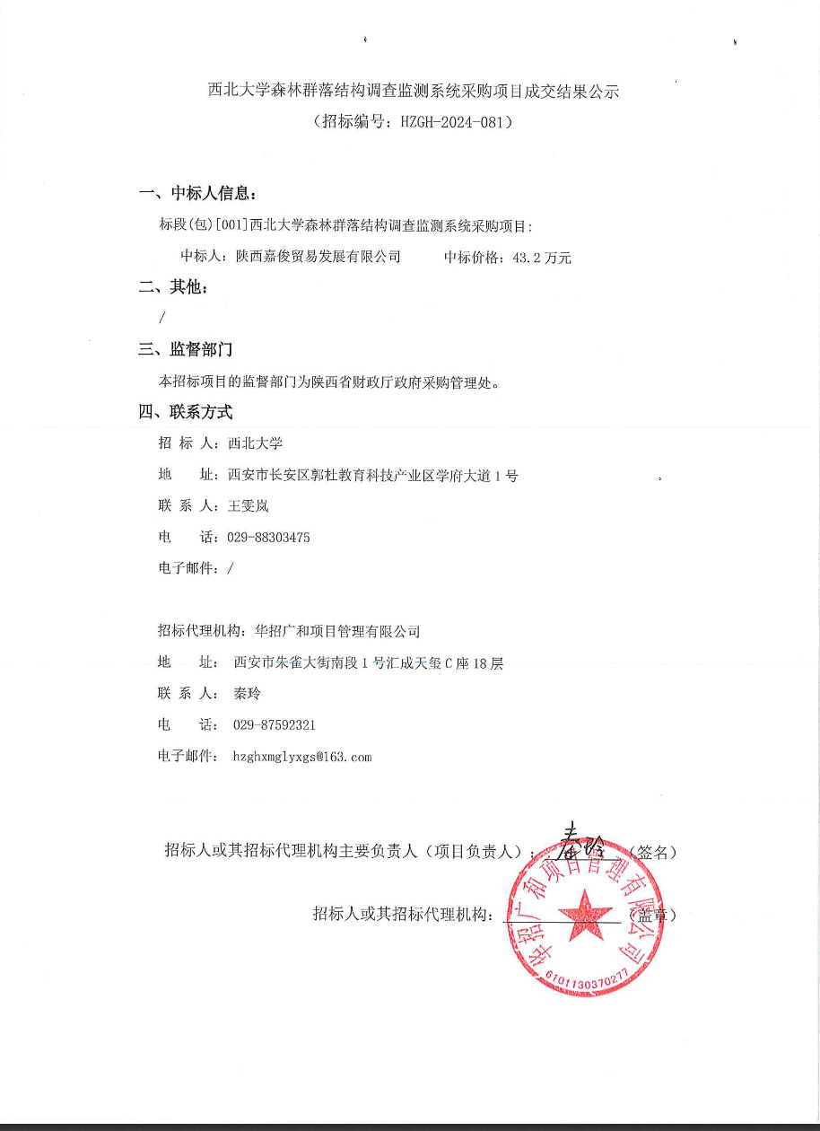 西北大学森林群落结构调查监测系统采购项目成交结果公示