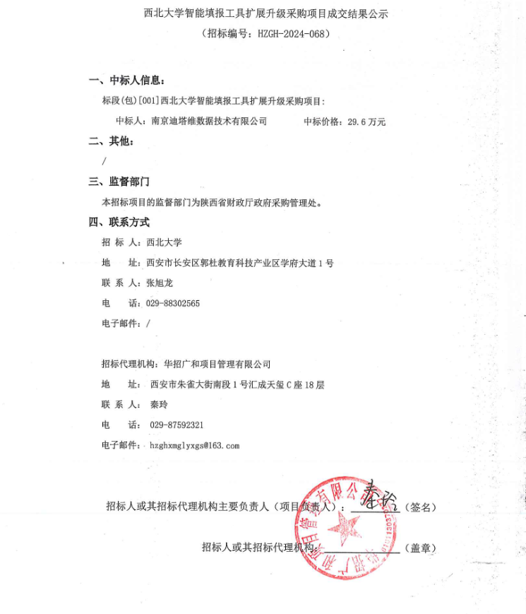 西北大学智能填报工具扩展升级采购项目成交结果公示
